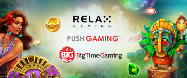 Мы представляем вашему вниманию наших новых игровых провайдеров — Relax Gaming, Big Time Gaming и Push Gaming.