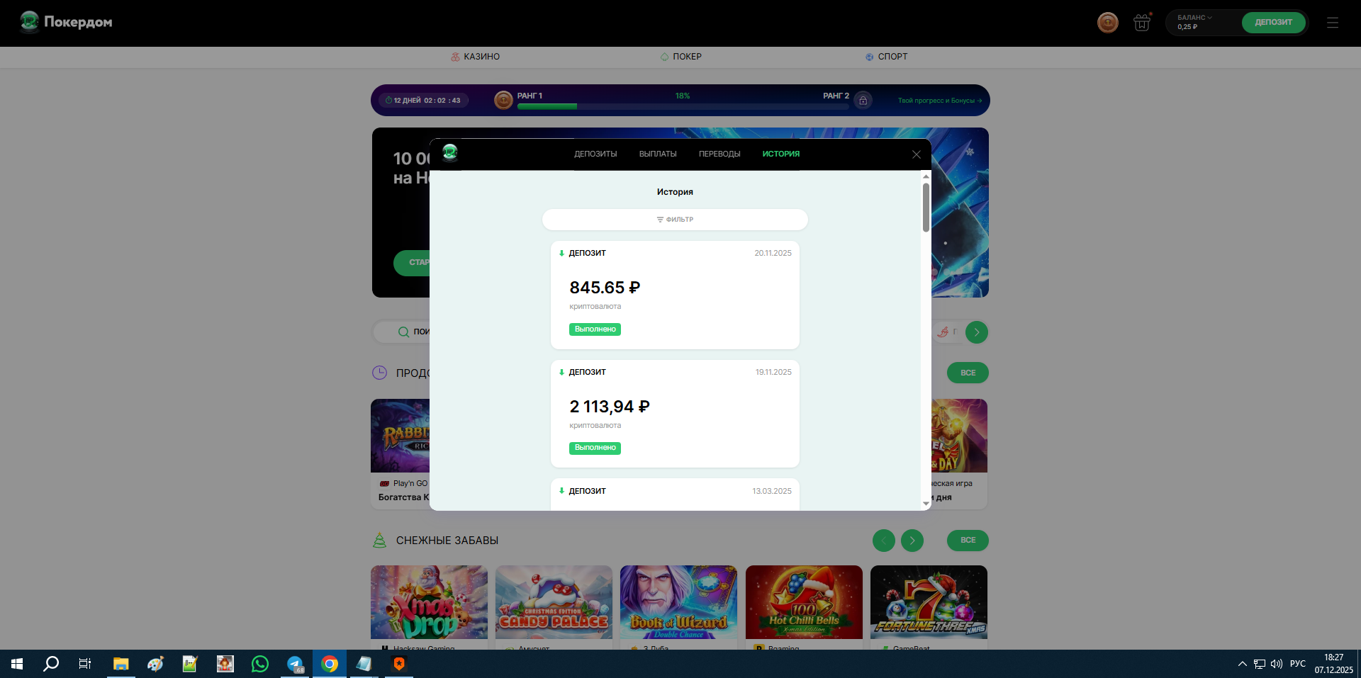 PokerDom Casino не предоставляет возможность играть на криптовалюту.