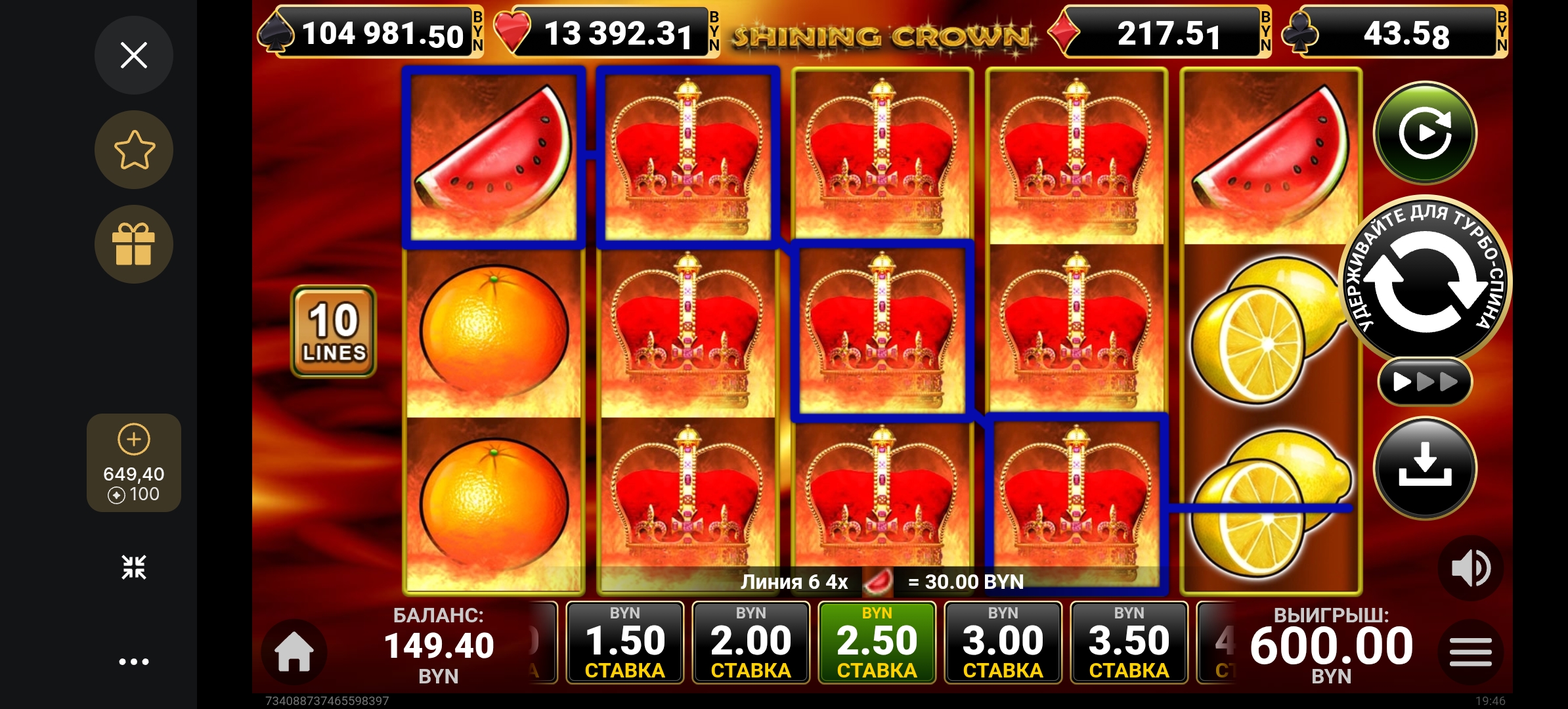 Казино FONBET.by х240 в слоте Shining crown от Amusnet( EGT).