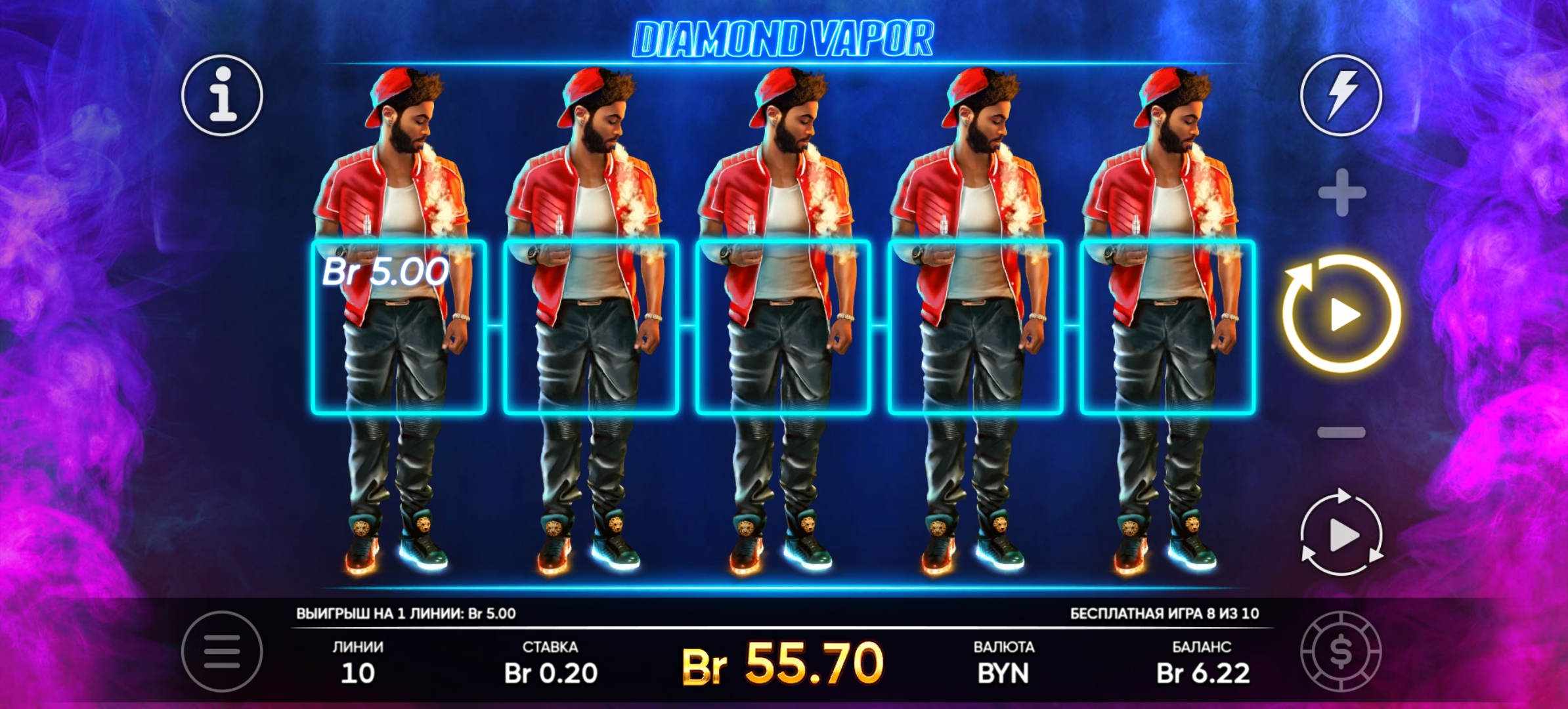 Казино Fonbet.by x250 в слоте Diamond vapor от Endorfina. Не много, но как же красиво)