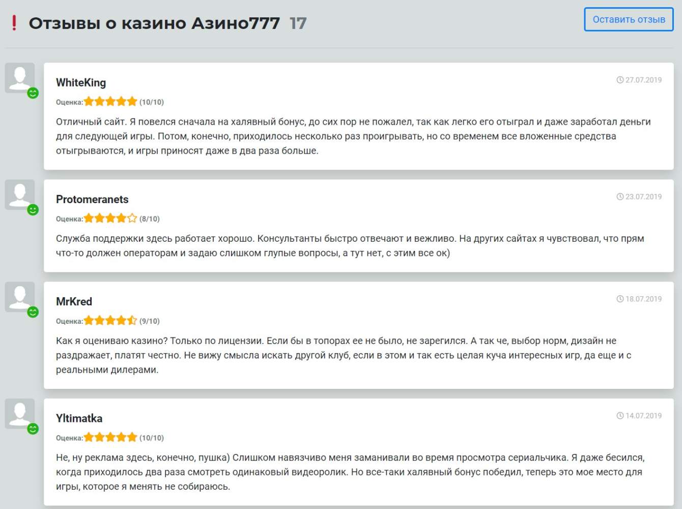 Отзывы на казино Azino777 для целей, «чтобы пользователь регнулся»