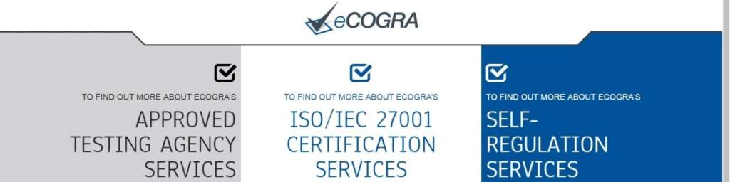 Такие компании, как eCOGRA относятся к независимым регуляторам азартной сферы и спектр их работы включает намного больше, чем в испытательных лабораториях. Это та же проверка софта разработчиков, а также инспектирование гемблинг-площадок на соответствие нормам безопасности и испытание персонала на квалификационные уровни.