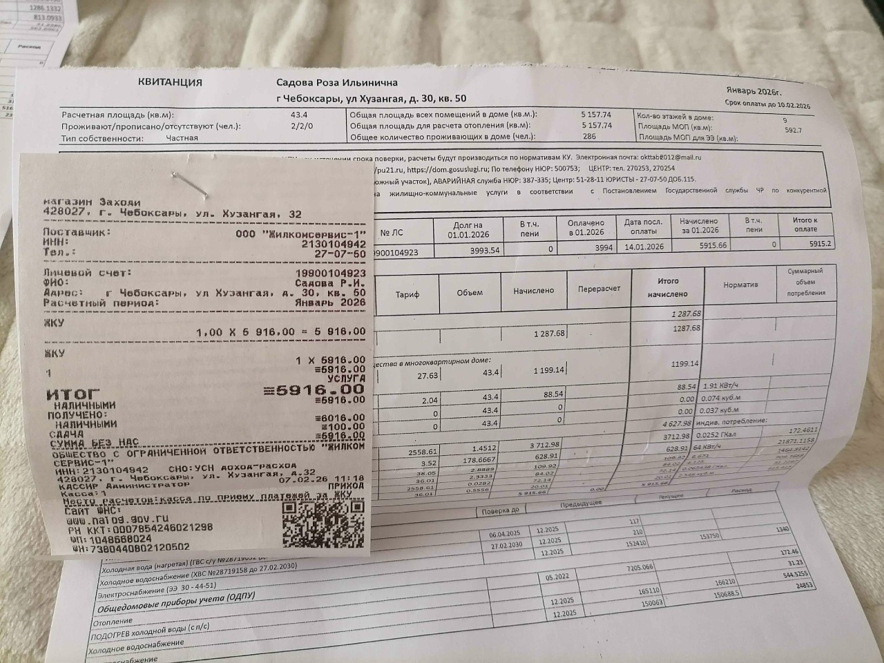 Квитанции ЖКУ (неоднократно)