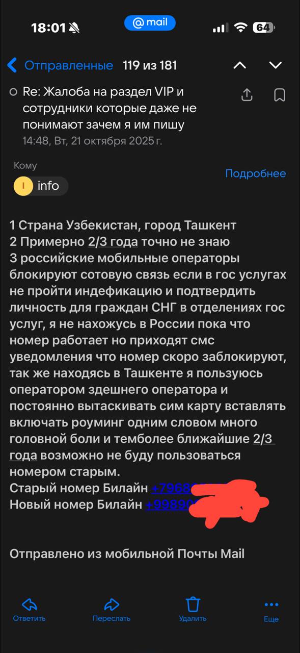 Попрошу вас ещё раз написать, но на другую актуальную почту службы поддержки — [email protected]. Пожалуйста, укажите, что у вас больше нет доступа к прежнему номеру телефона и что вы проживаете в другой стране, с чётким запросом отвязать номер телефона от аккаунта. Также приложите фото основного разворота паспорта (того, который привязан к вашему аккаунту) на фоне листка бумаги с сегодняшней датой.