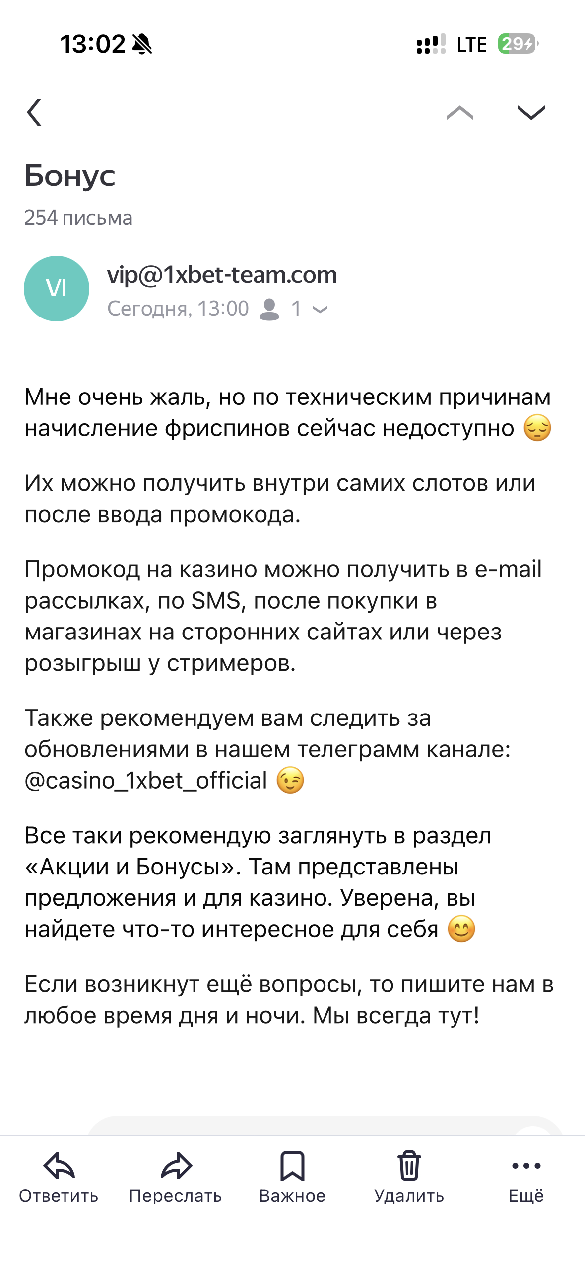 Претензия Masik05 к 1xBet Casino от 31.03.2026