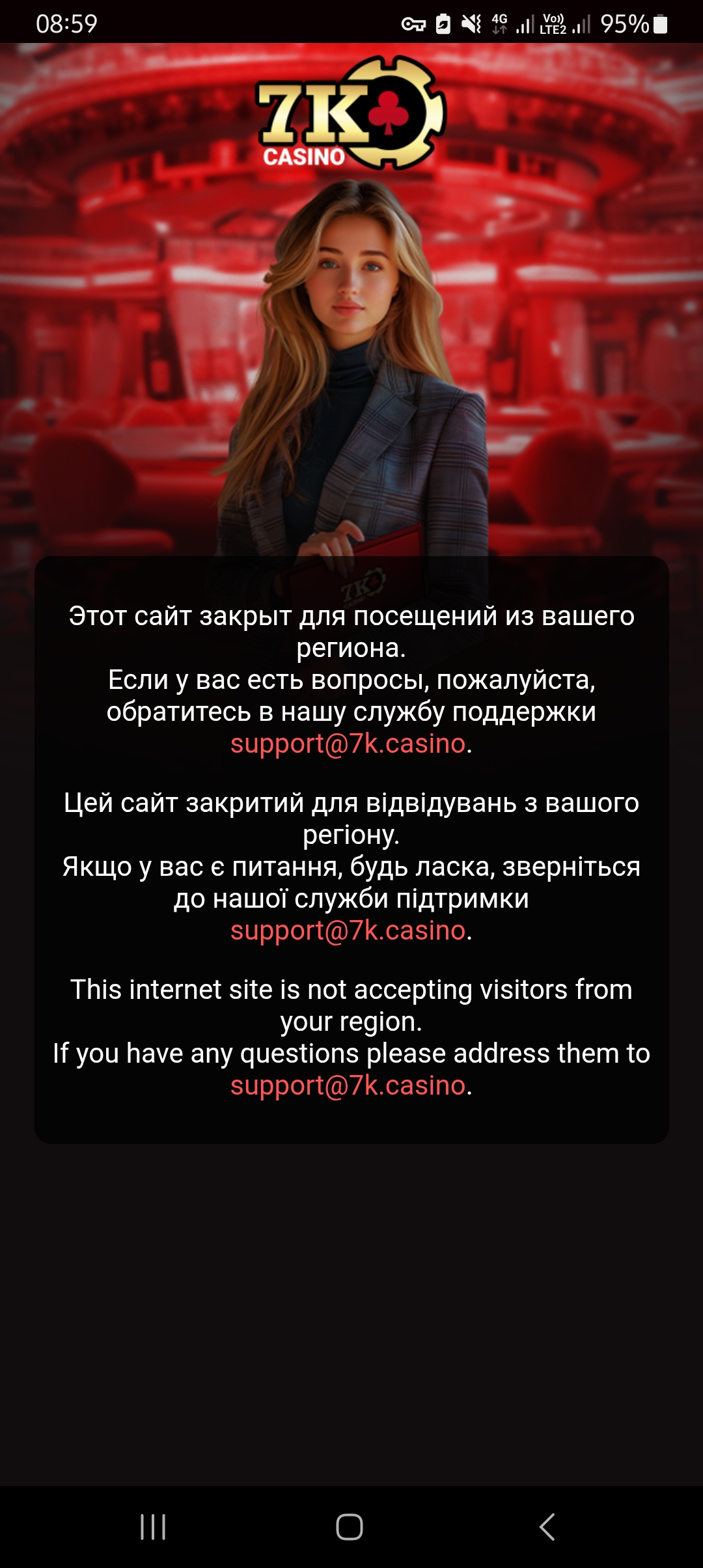 Здравствуйте! Прошу администрацию казино 7к дать ответ, по какой причине казино стало недоступно по региону?