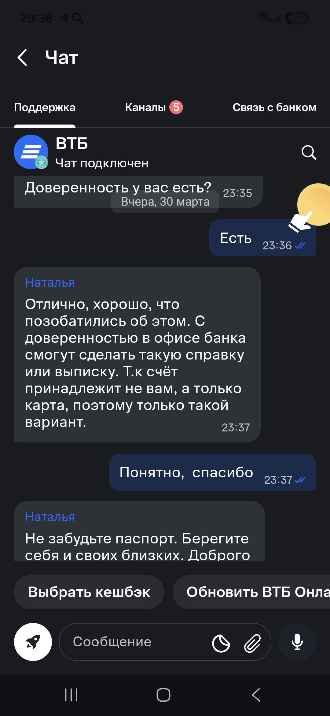 Вот так мне отвечают в поддержки банка , скрин прикладываю