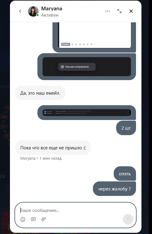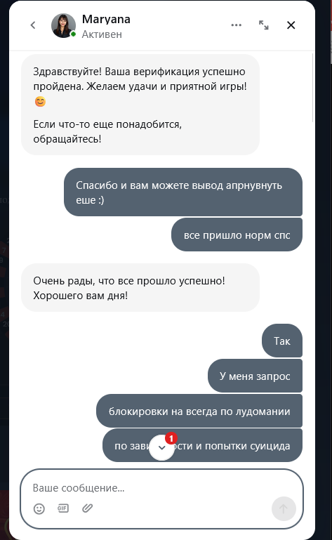 Не решено — не блокирвуют акаунт по зависимости после запросов в чате и почте
