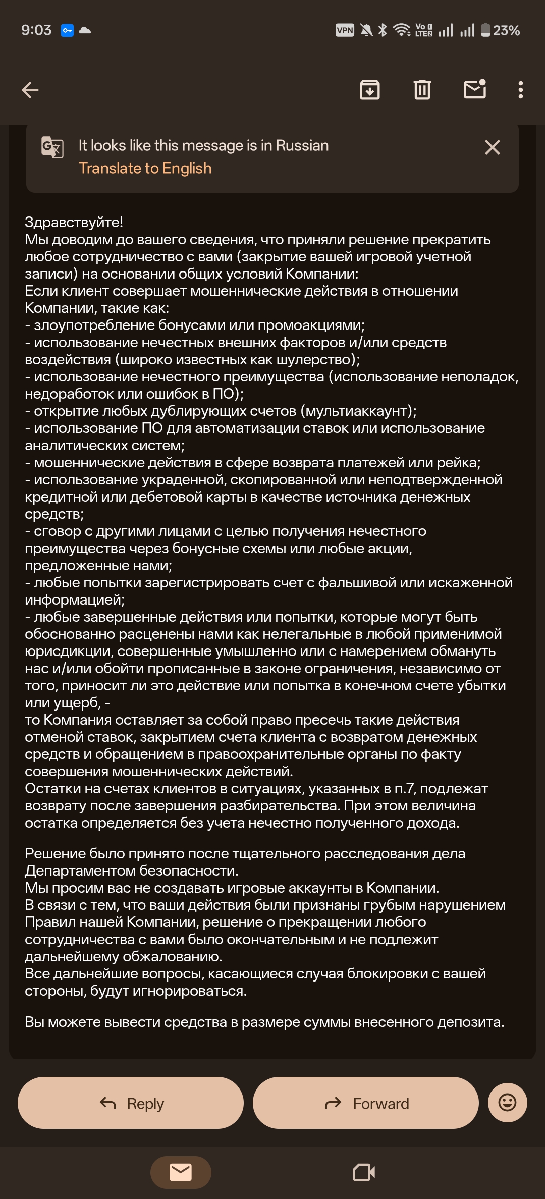 В итоге у меня конфисковали выигрыш, отдали только депозит, спустя 2 месяца верификации. Прошу предоставить доказательства моих нарушений модератору, все ставки были поставлены абсолютно честно.