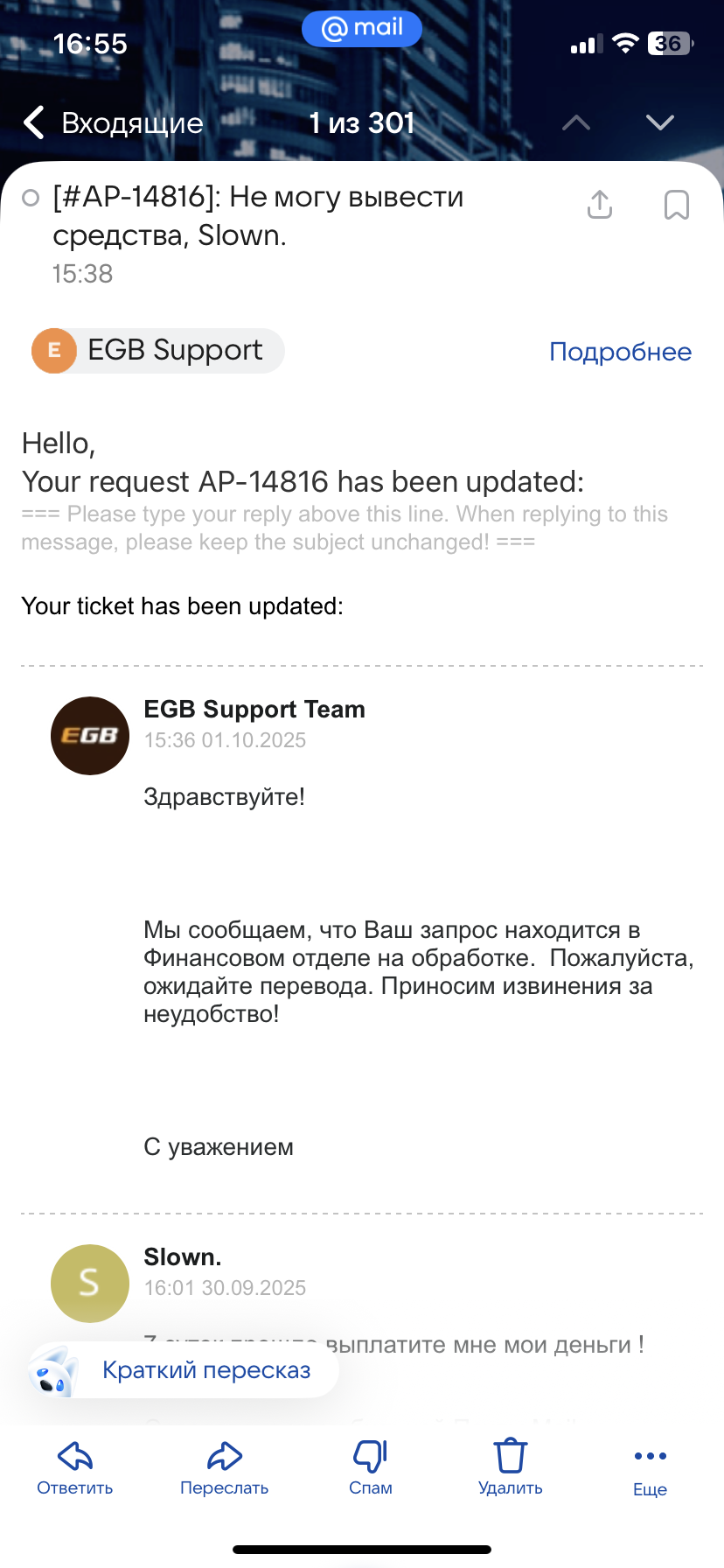 @vyacheslavlenin ну вы понимаете что они пишут одно и то же на протяжении уже долгого времени и тянут резину непонятно зачем , они мне могут и год так писать , что якобы все в процессе ? И мне просто ждать ? Они же говорили что до 5 дней выплата , я жду гораздо дольше , все прикрепляю все скриншоты , прошло уже почти в 3 раза больше этих 5 дней и где эта выплата ? , они просто обещают и все, но не выполняют свои действия ! Что мне делать , когда будет выплата неизвестно