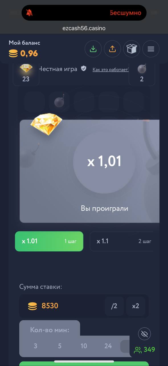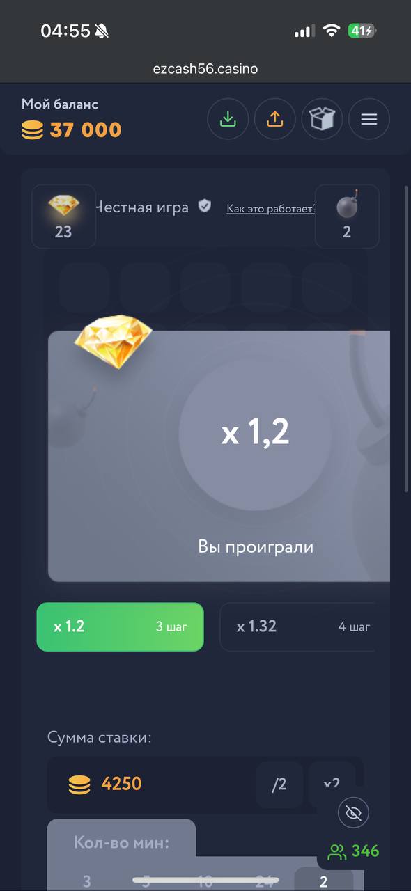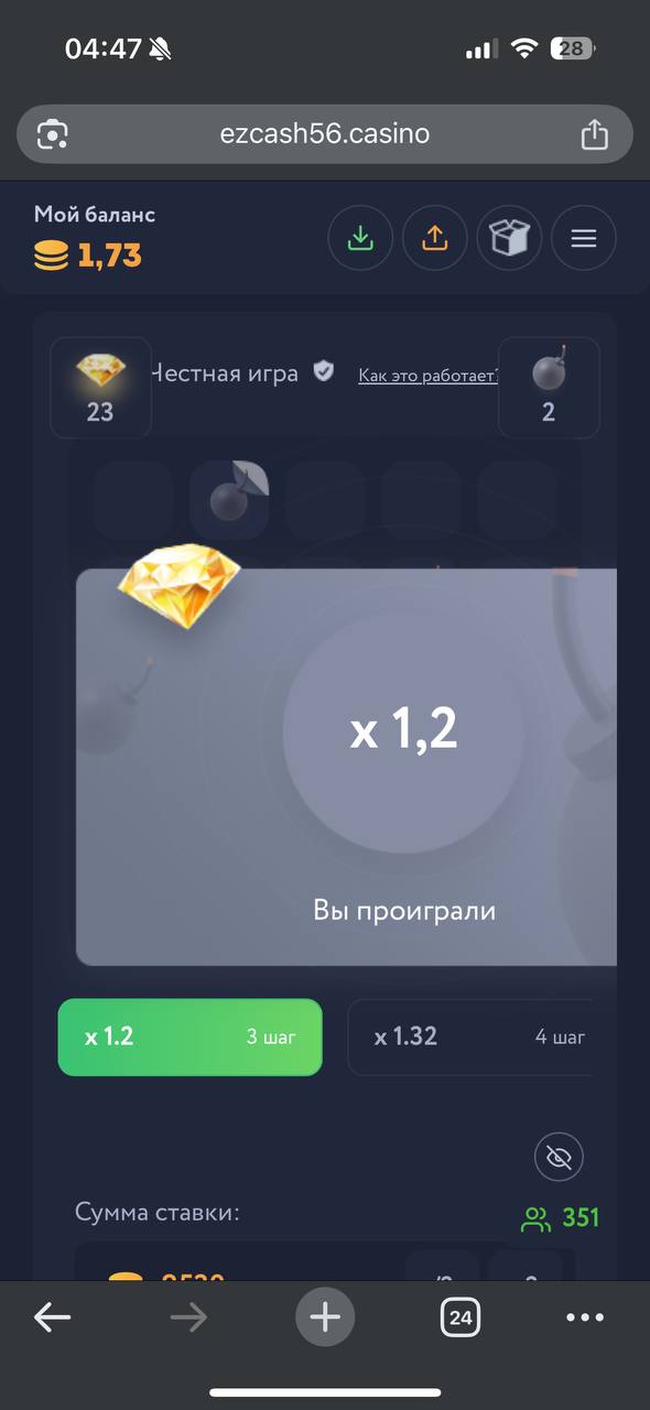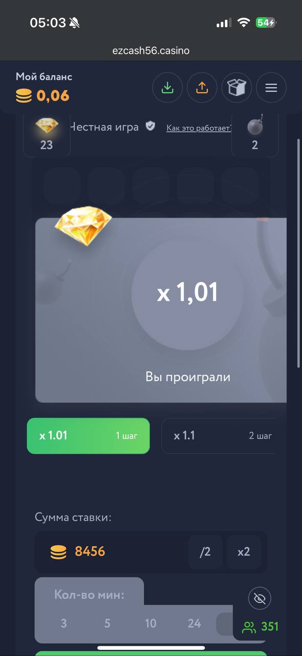EzCash Casino: 24 раза подряд проиграл на 14 минах