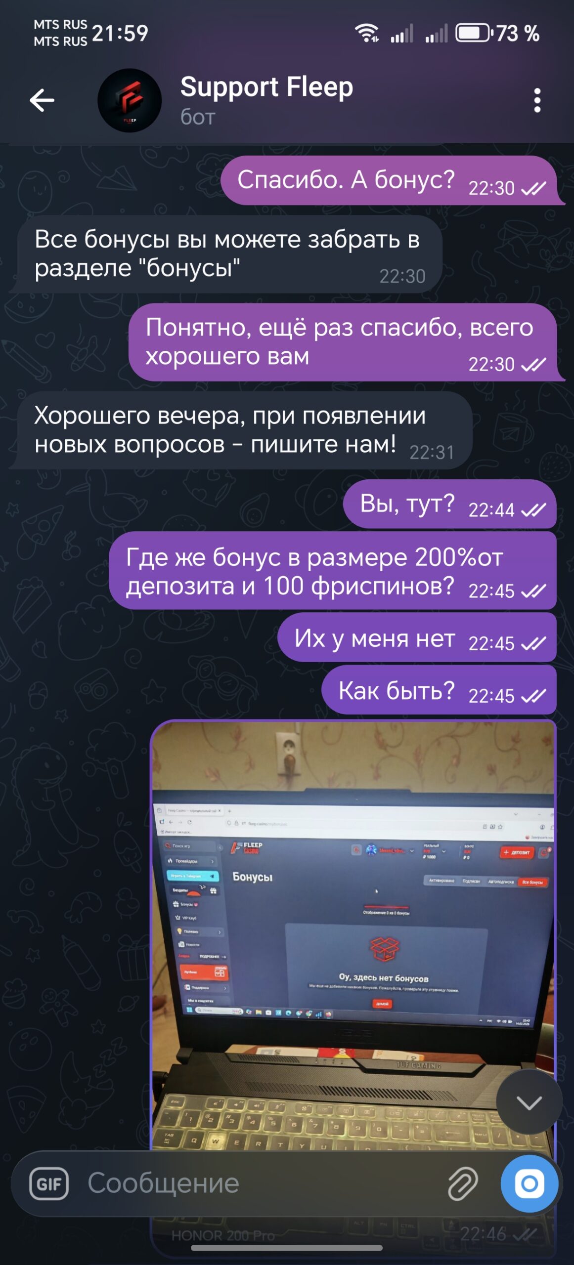 Претензия fartojop_78 к Fleep Casino от 20.02.2026