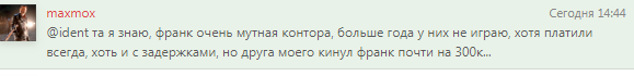 Пруфы: /forums/topic/8158-frank-casino-otzyvy-kommentarii-opyt-igry/?page=23