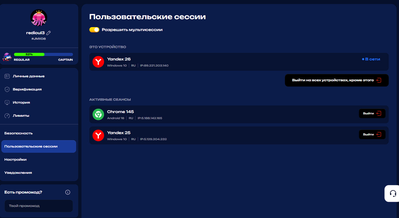[25.03.2026 10:26] Мишоня: Михаил, благодарю за ожидание. 🤝 Наблюдаю, что у вас есть дублирующие аккаунты, которые ограничивают получение бонусов. Подскажите, пожалуйста, вам знакомы профили [email protected], [email protected]? И это ограничение поставили после того как я сообщил в поддержку, что буду подавать жалобу, моментально. На мой взгляд это является страховкой со стороны казино+Вм