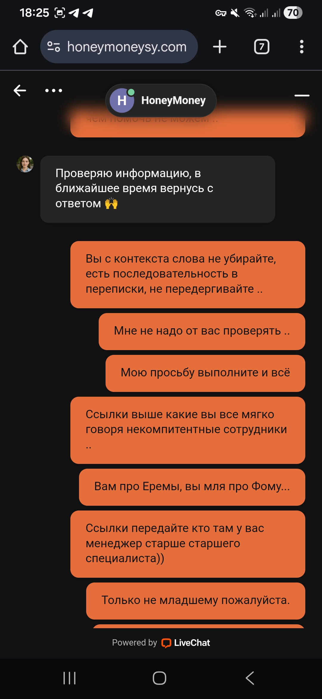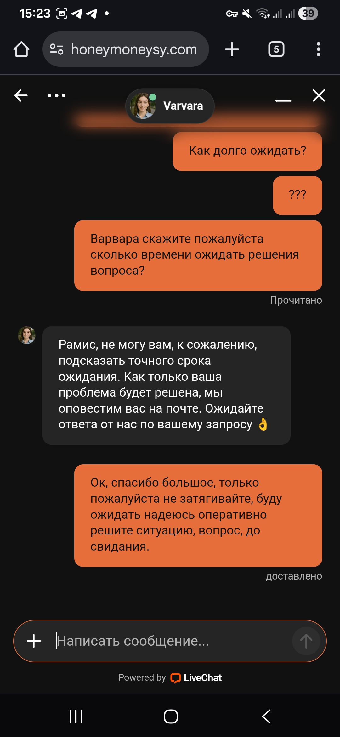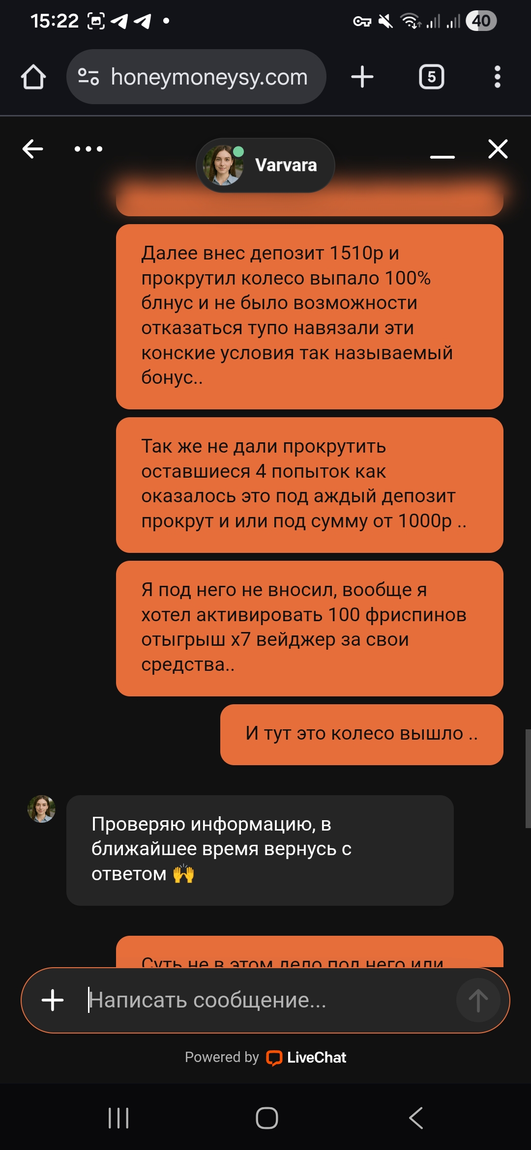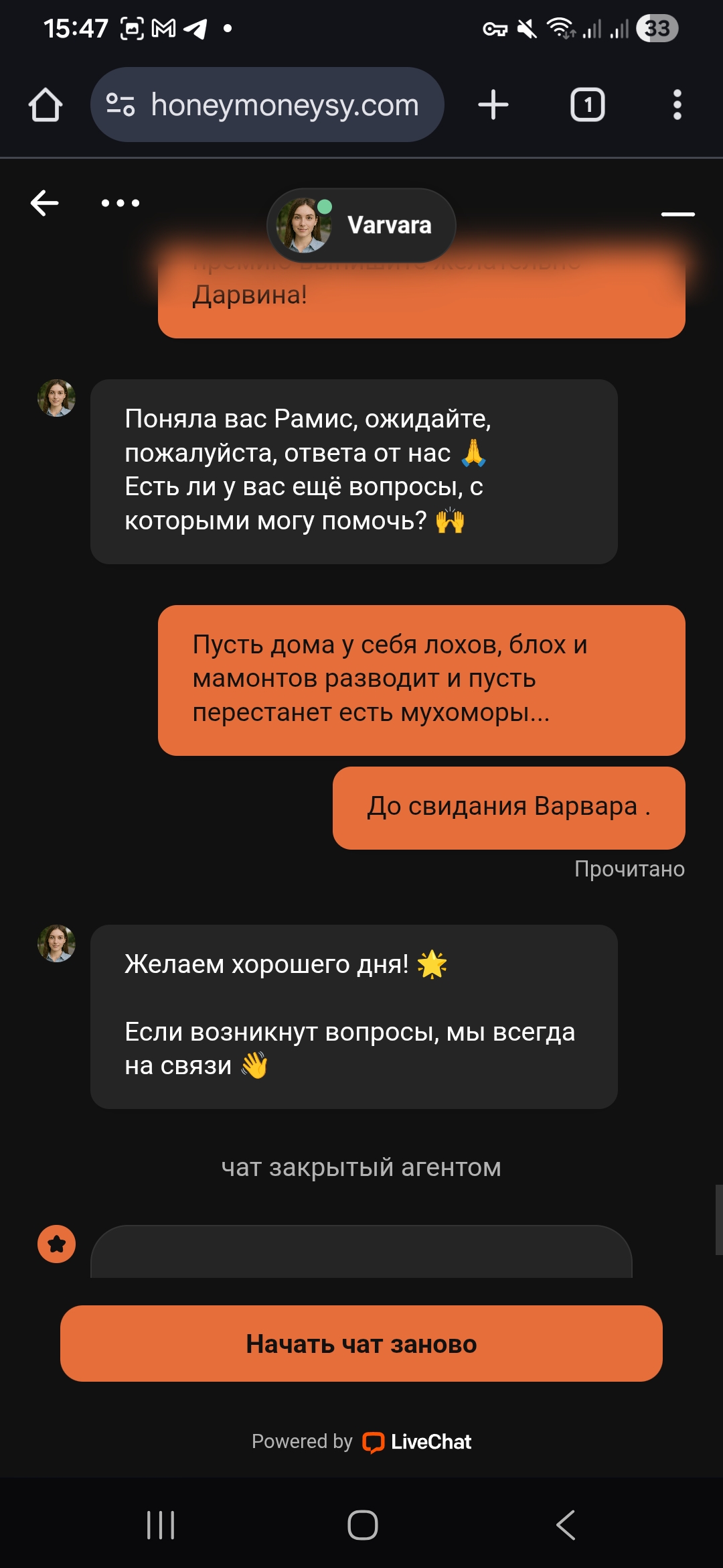 Попробую сюда всё таки загрузить скрины в начале диалог, общения с сотрудником чата с Варварой. Не совсем в последовательности, но смысл, суть общения, обращения понятен.