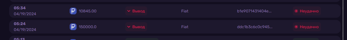 Мы не отменяли ваш вывод, и все платежи с нашей стороны были успешно обработаны. Вы запросили вывод 3 платежей в промежутке с 05:24 до 05:35 по МСК. Первый платеж на сумму 150 000 RUB был успешно выполнен, а второй платеж на ту же сумму был отменен платежным провайдером из-за превышения ежедневного лимита на вывод, согласно пункту 9.6 наших текущих Условий и положений.