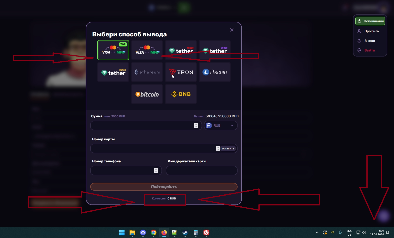 Благодарим вас за обратную связь. Надеемся, что в следующий раз у вас не возникнет проблем с комиссией и выводами, и мы сможем предоставить вам комфортные условия для игры.
