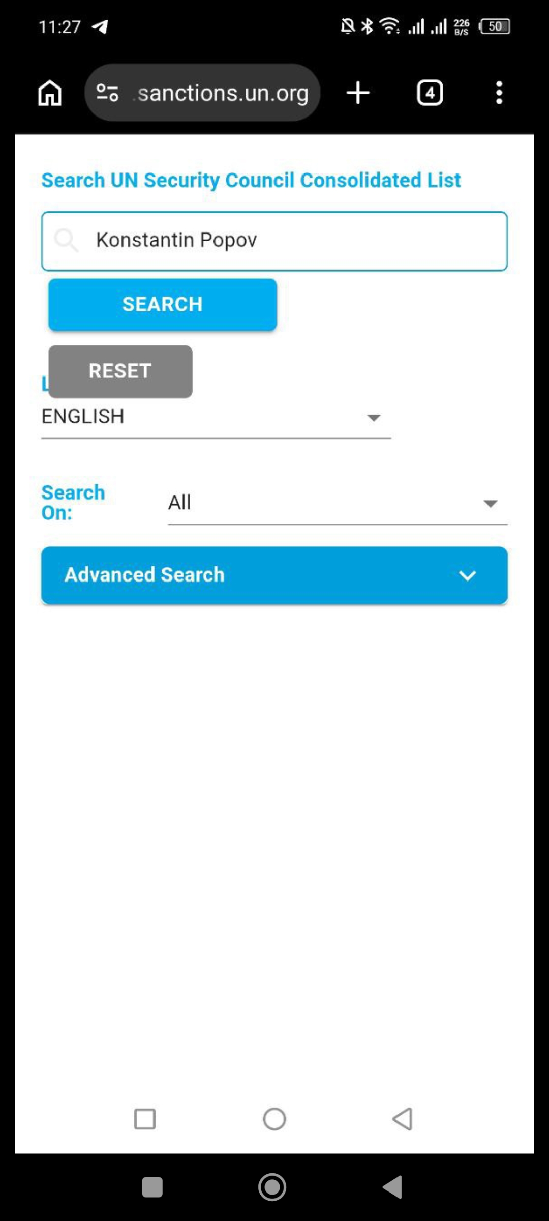 Ув. игрок, в данный момент от вас требуется войти на сайт ООН и проверить себя на содержание в санкционных списках