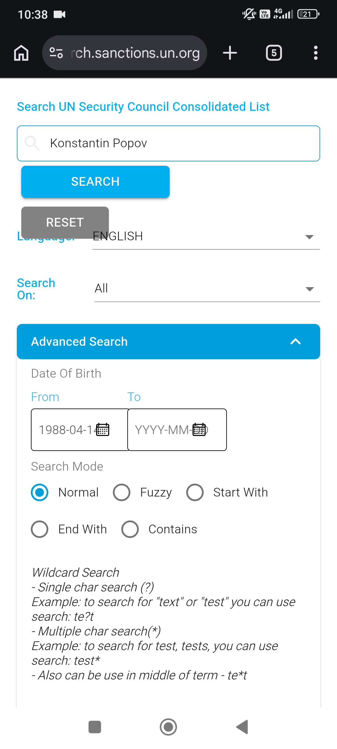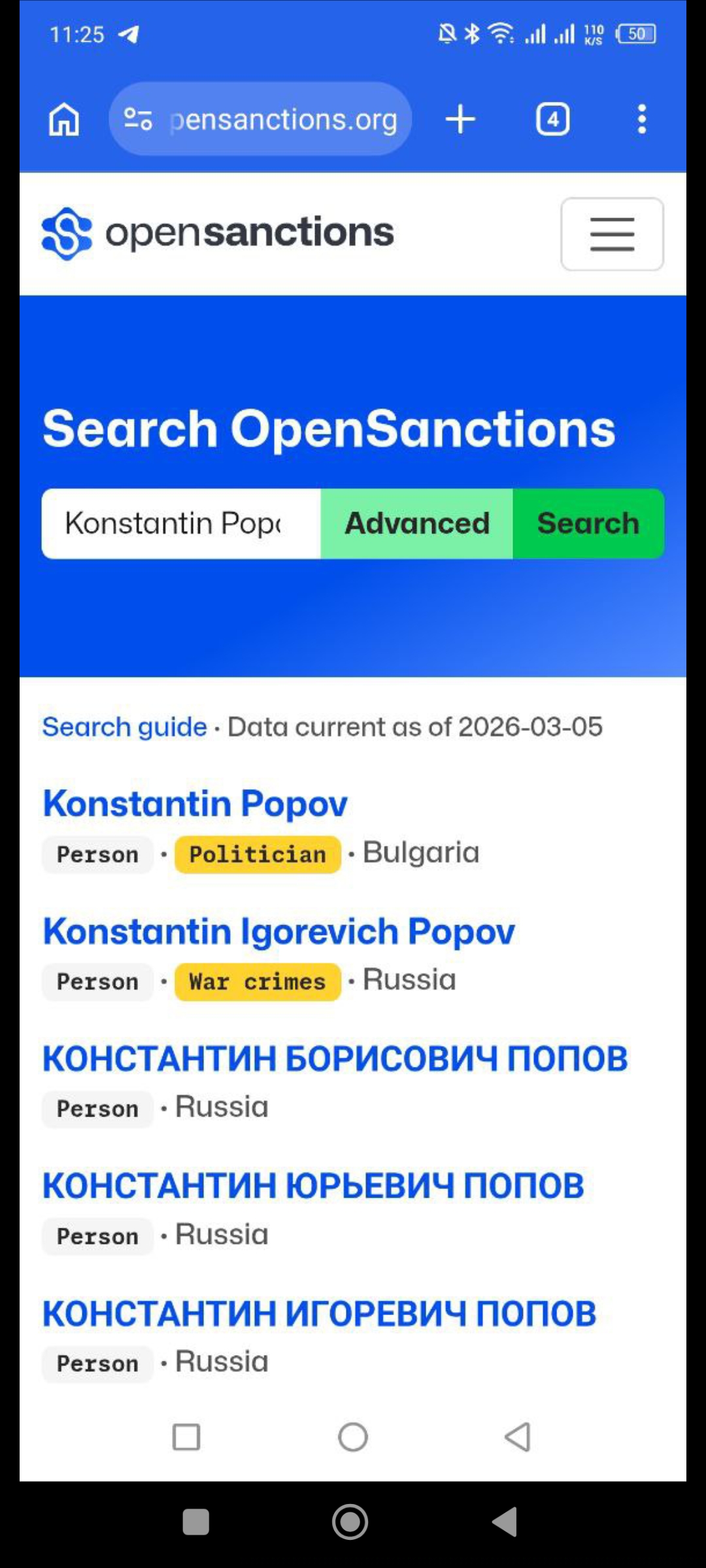 если вводу более точные данные(с датой рождения, то пишет, что нет результатов в санкционных списках по мне)!