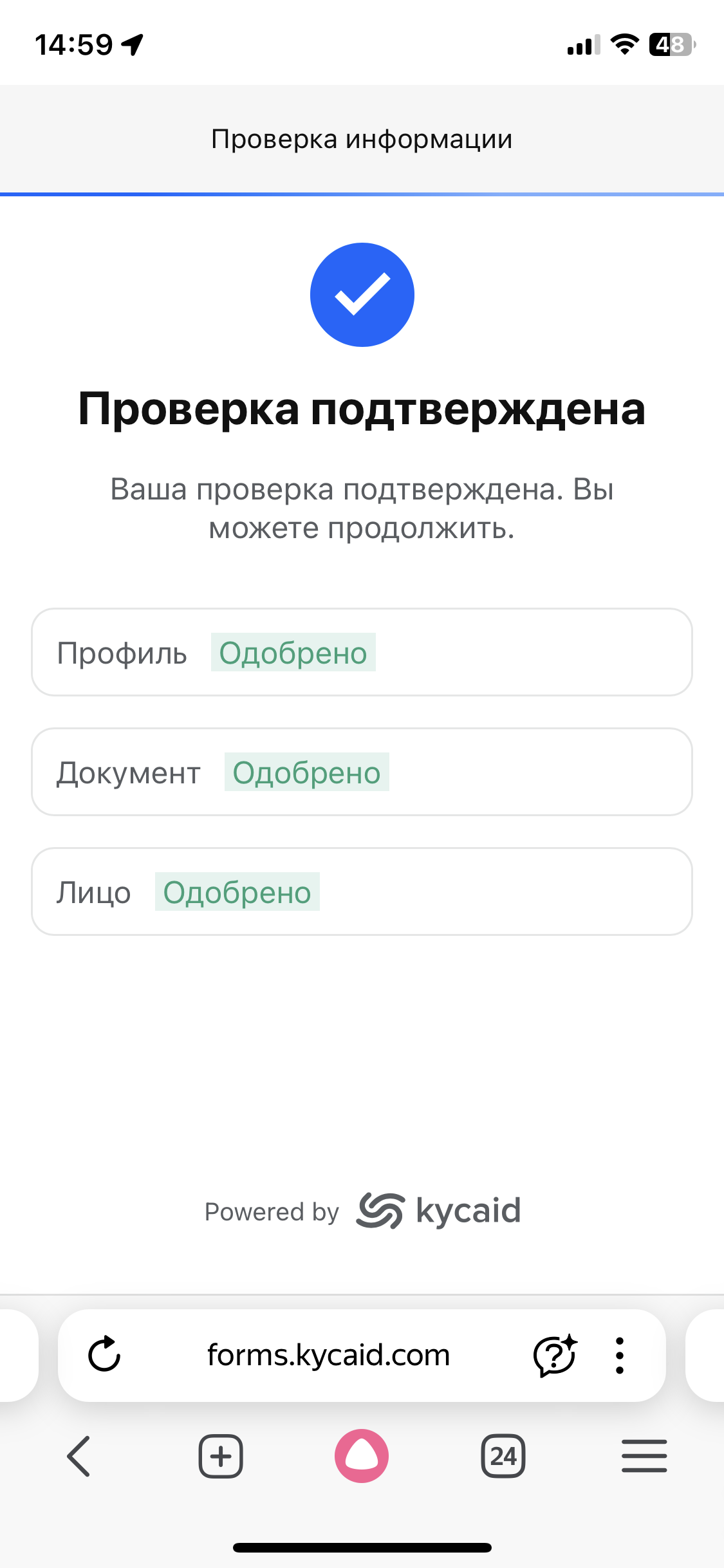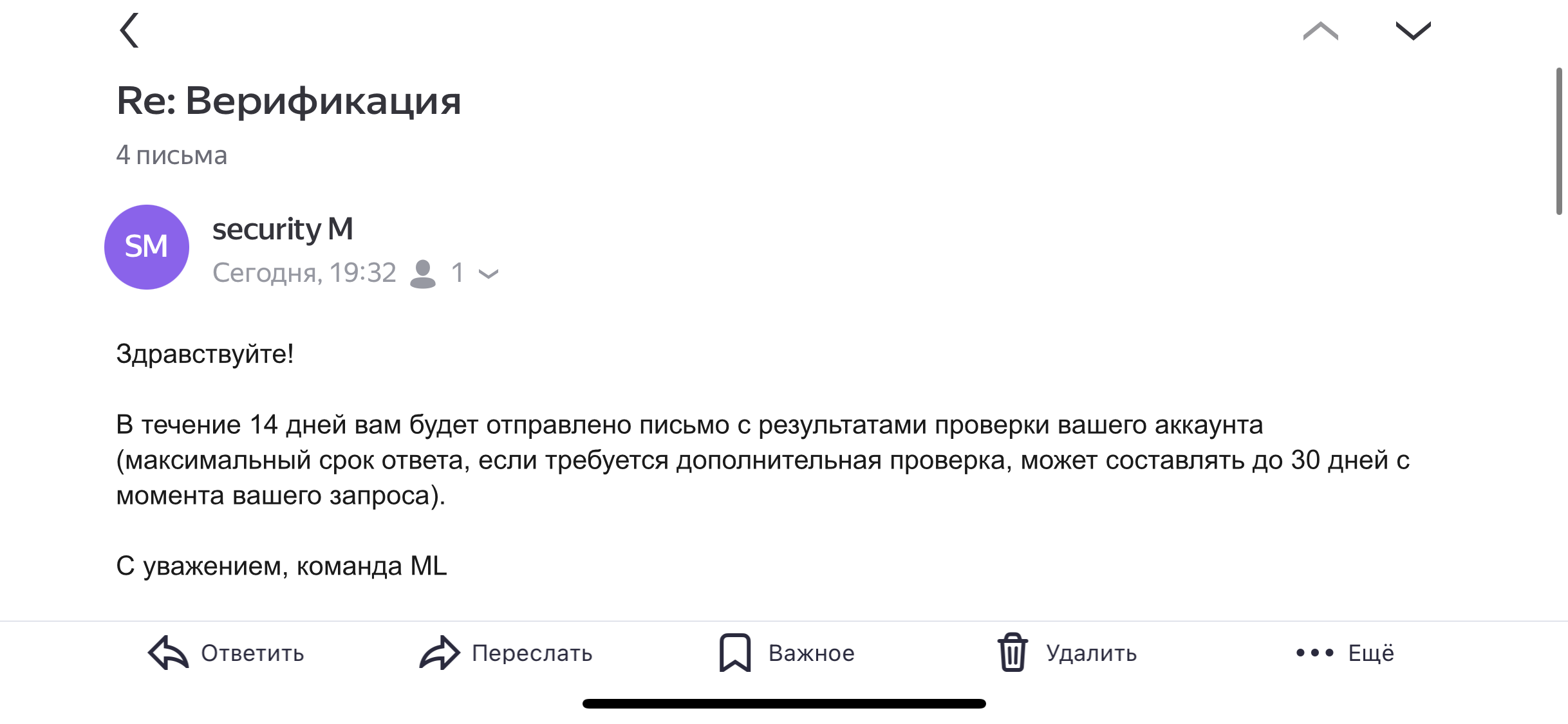 @pavel58 Обратитесь, пожалуйста, на [email protected]. Там вам объяснят, какие документы следует предоставить. Также просим дождаться завершения проверки в рамках регламентированных сроков.