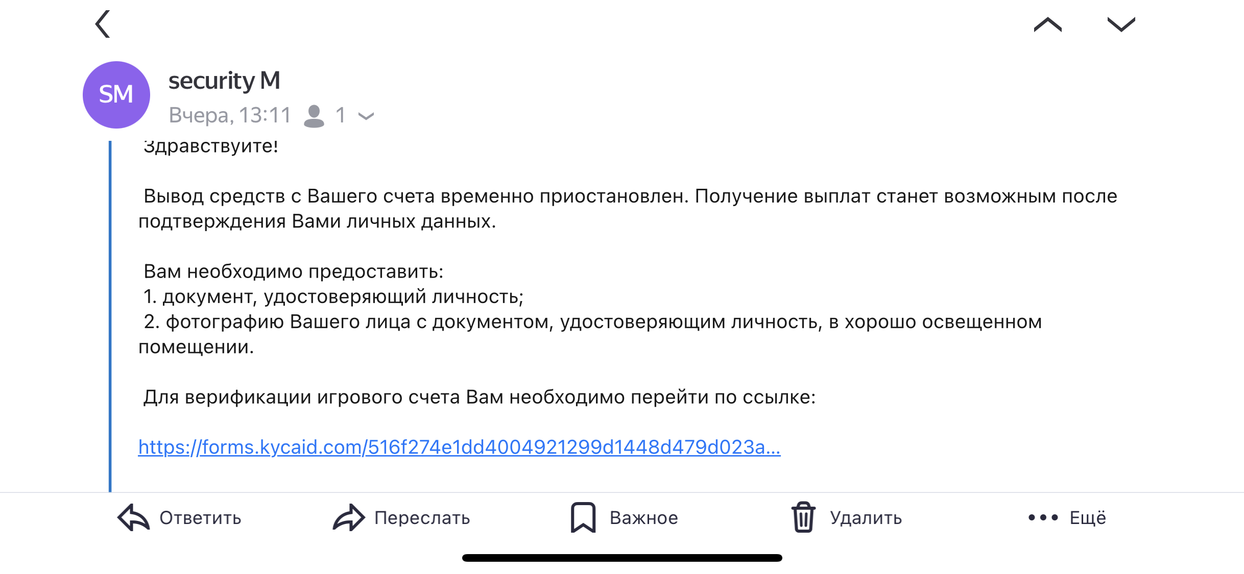 2- вы присылали ссылку на верификацию и я ее успешно проходил (фото прилагается)