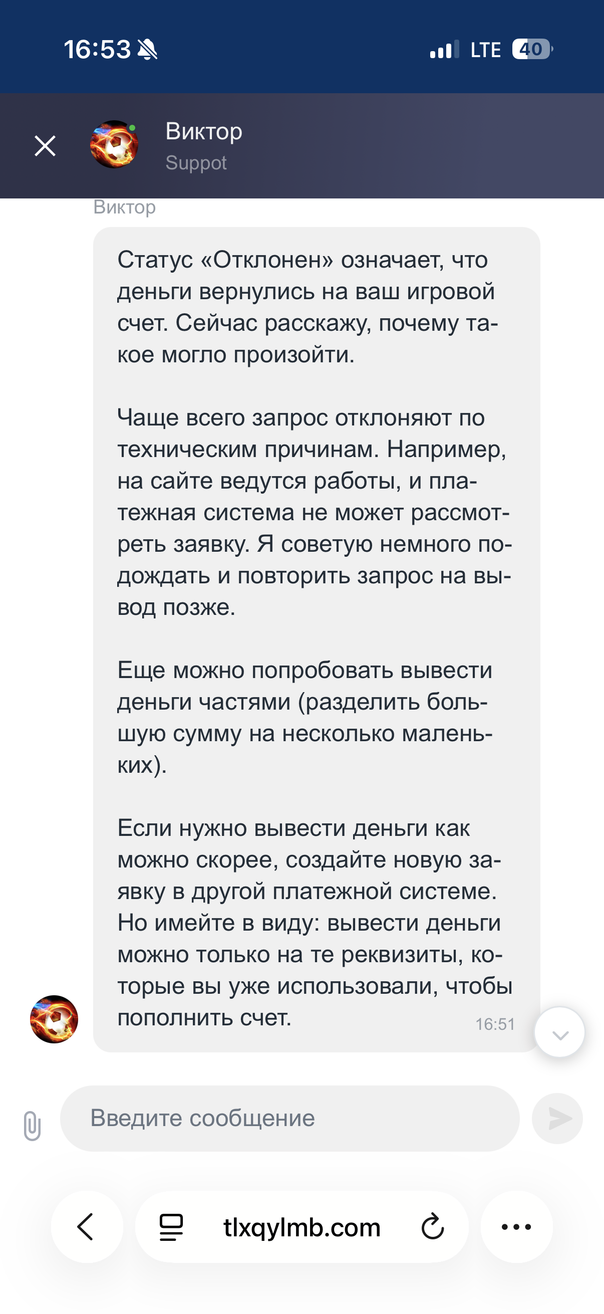 Добрый день! Уже несколько дней пытаюсь вывести денежные средства на крипокошелек, постоянно отменяют вывод, выводят выборочно только заявки где сумма вывода копеечная, избирательно только одобряют некоторые заявки на мелкие выводы. С сотню заявок в день создаю, каждый раз “отклонено”. Поддержка не помогает, якобы приняли обращение чтобы выяснить в чем причина, ссылаются на общие и размытие формулировки, ощущение, будто тянут специально — дабы баланс был слит.
