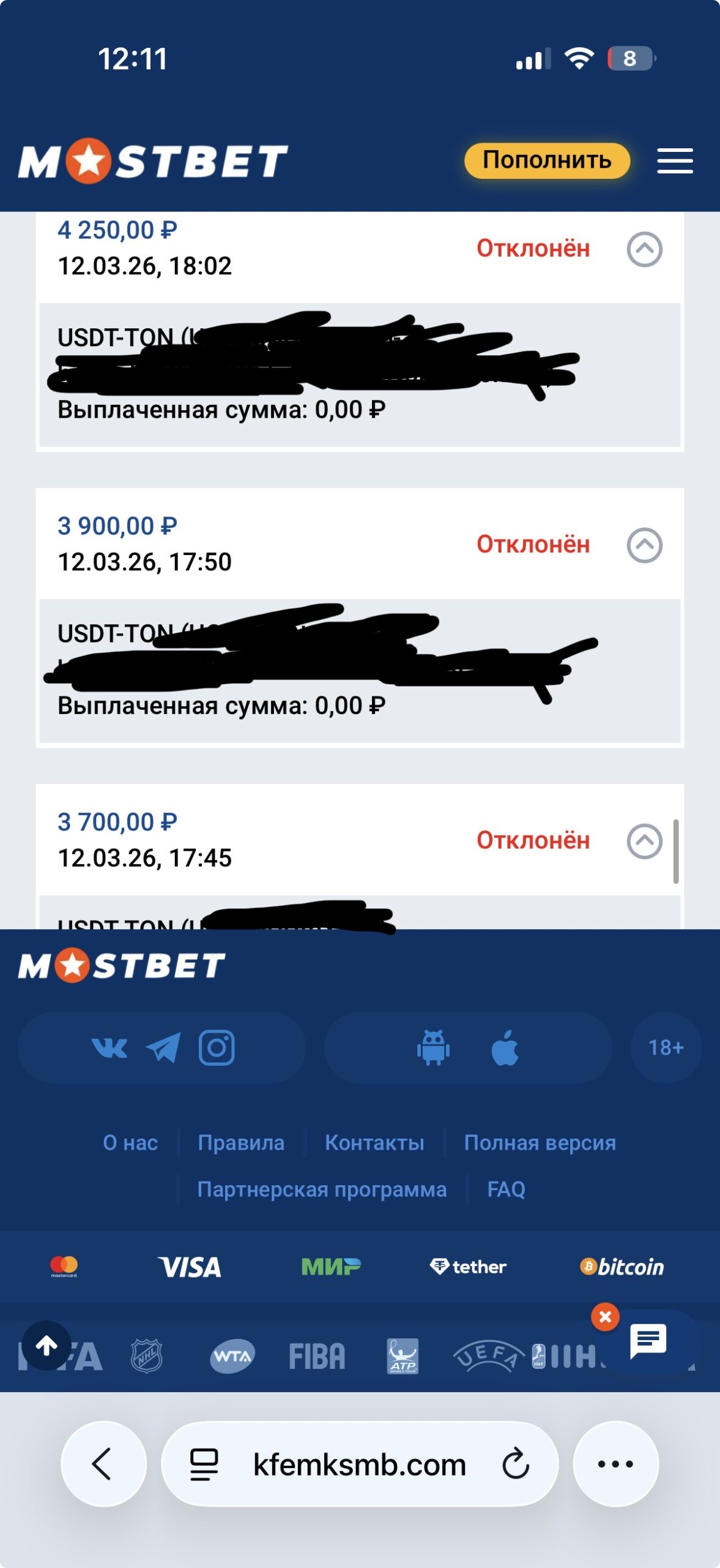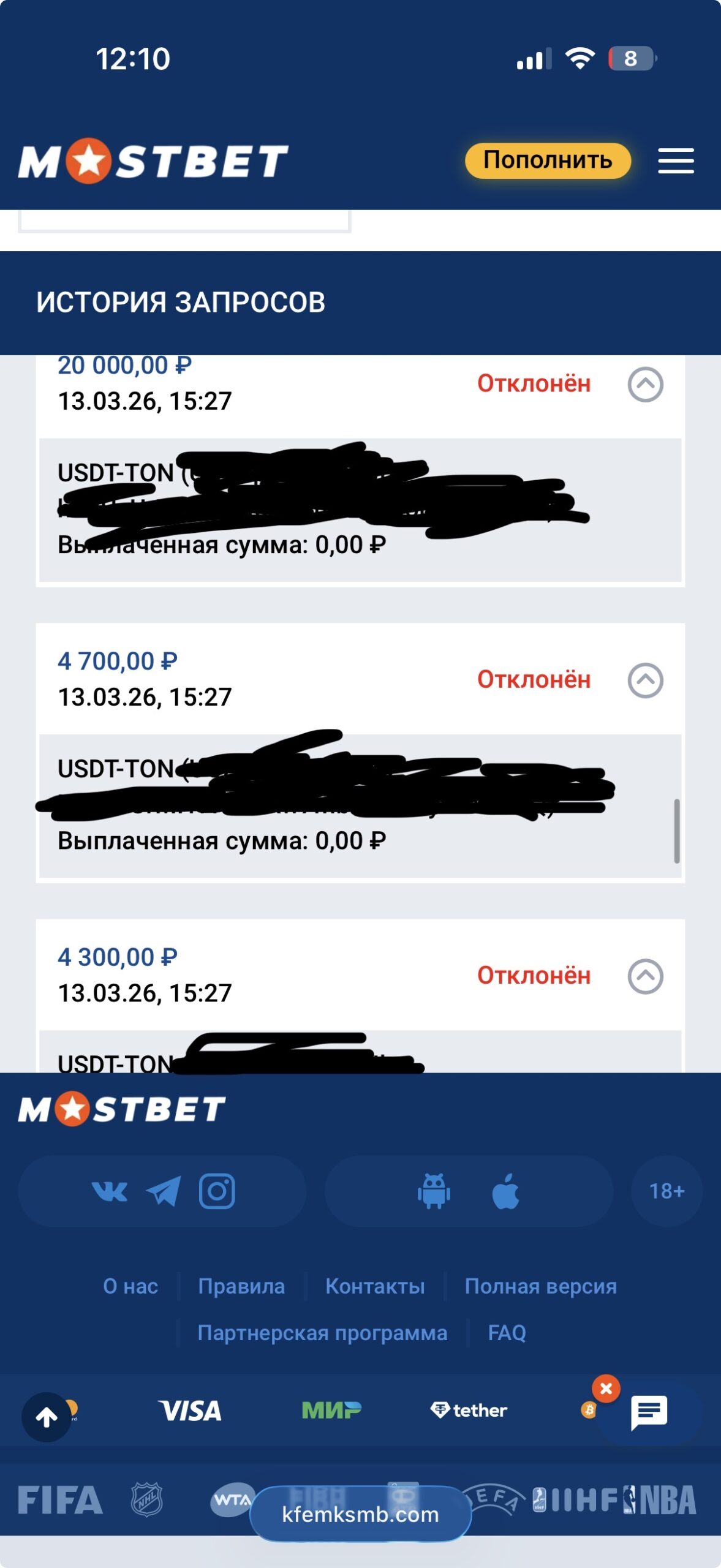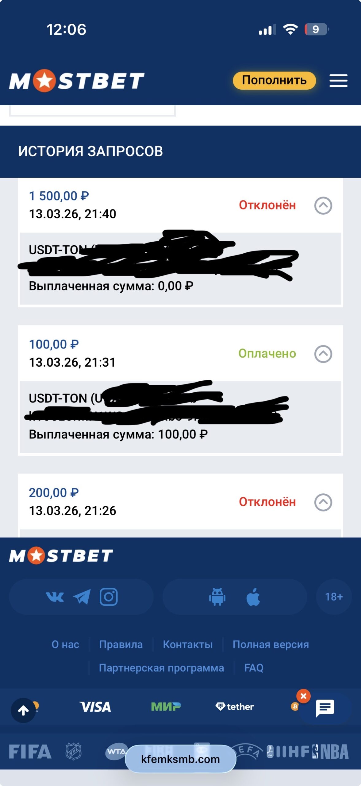 Требую от представителя Mostbet прекратить практику принуждения игрока к созданию сотен микро-заявок и обеспечить вывод оставшегося баланса в полном объеме на мои реквизиты (USDT TON). Подобное поведение финансового отдела расцениваю как намеренное создание препятствий с целью слива баланса игроком.