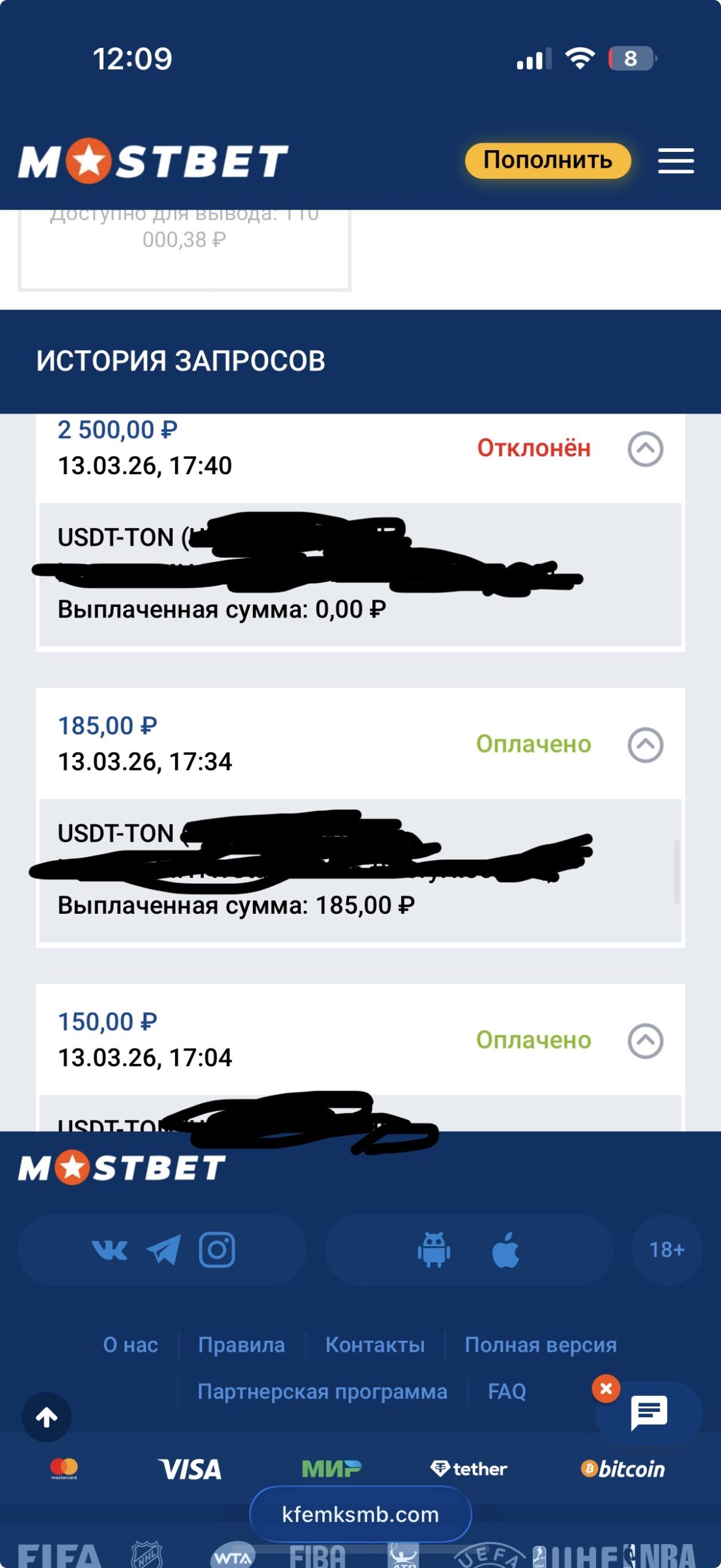 На прямой TON за все 6 дней не было одобрено ни одной выплаты, заявки на этот метод отклоняются систематически и моментально.