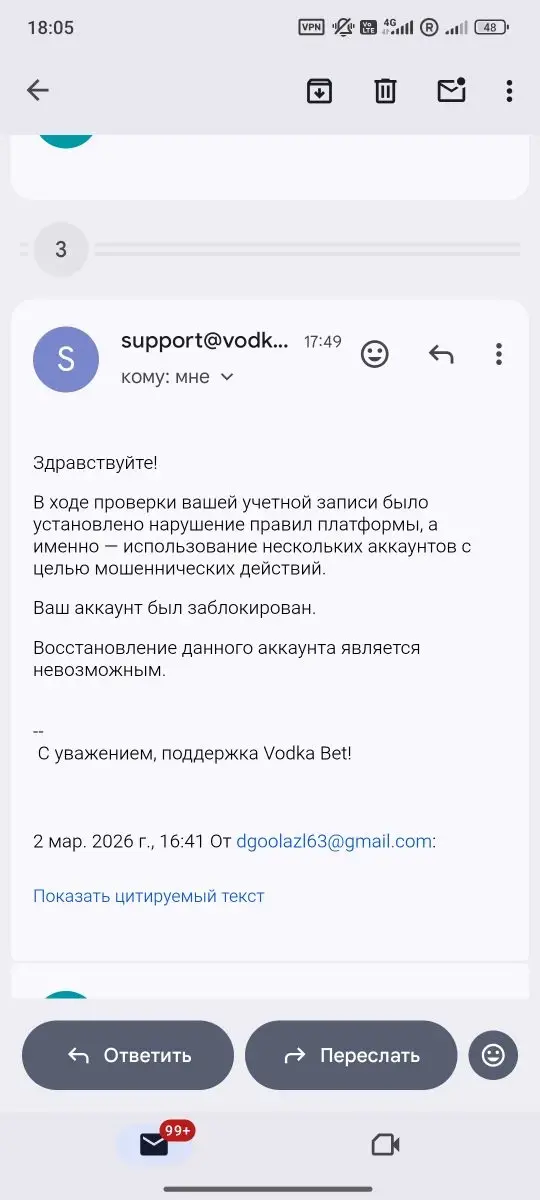 Vodka Bet Casino: 02.03.2026 заблокировали мой аккаунт