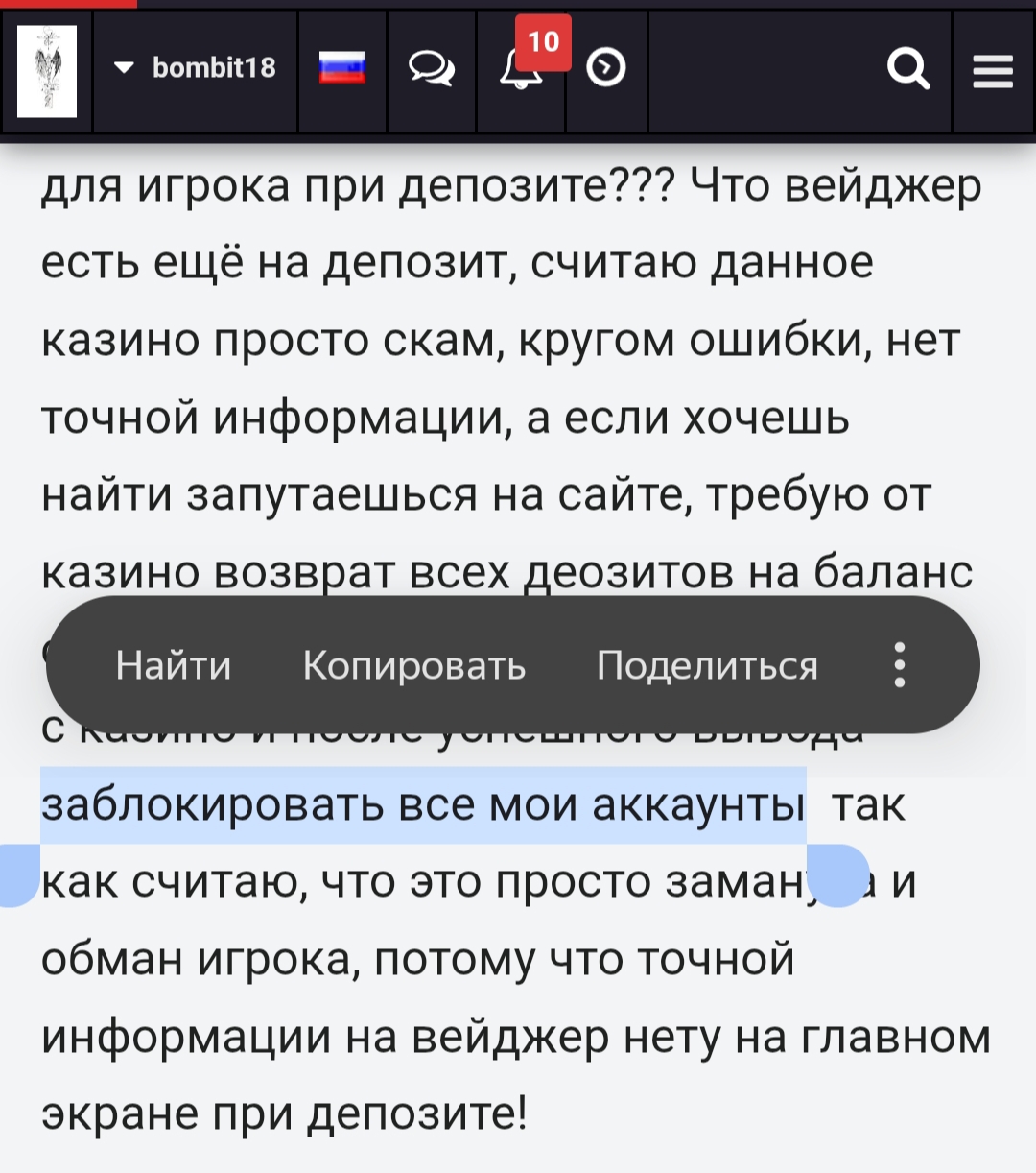 Претензия bombit18 к Vodka Bet Casino от 18.07.2025