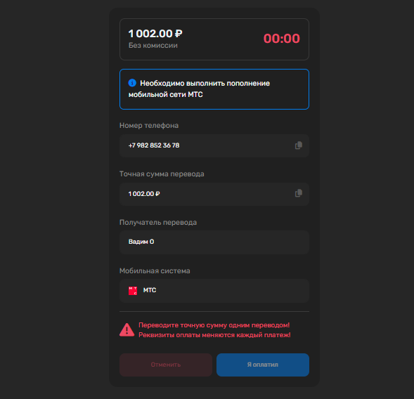 Да есть надпись что переводите точную сумму но нет не где надписи что если ошибся потерял средства! И ваше казино не единственно на котором я сижу и на других таких проблем не было всегда все везде зачисляли даже если и ошибся в сумме! Либо в самом окне перевода писалось что если переведете не верную сумму вы не получите средства. Но в основном не когда проблем с этим не было. По вашей логике я оплатил кому-то депозит так легко же узнать кому и я сомневаюсь что человек тоже перевод не сделал. Я даже боюсь представить что если депозит был бы на большую сумму тысяч на 100 тогда бы жалобами дело бы не закончилось!