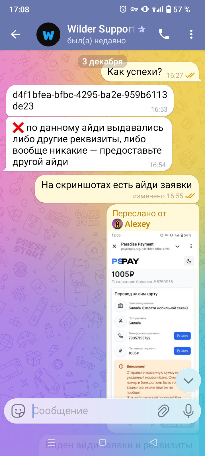 Претензия AlexeiKent1 к Wilder Casino от 05.12.2025