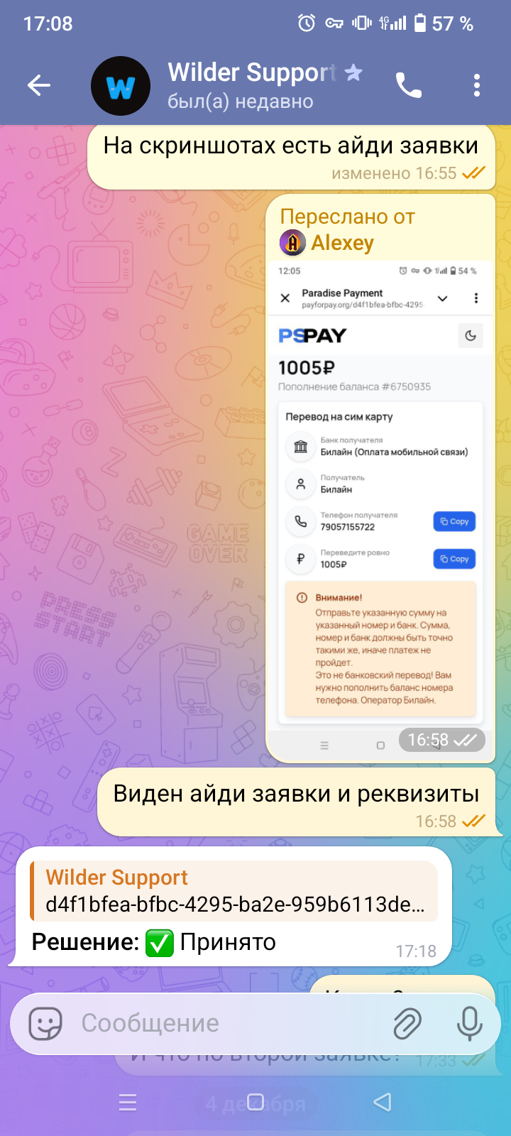 Хотя на скриншоте всё прекрасно видно, номер заявки и реквизиты по которым был перевод