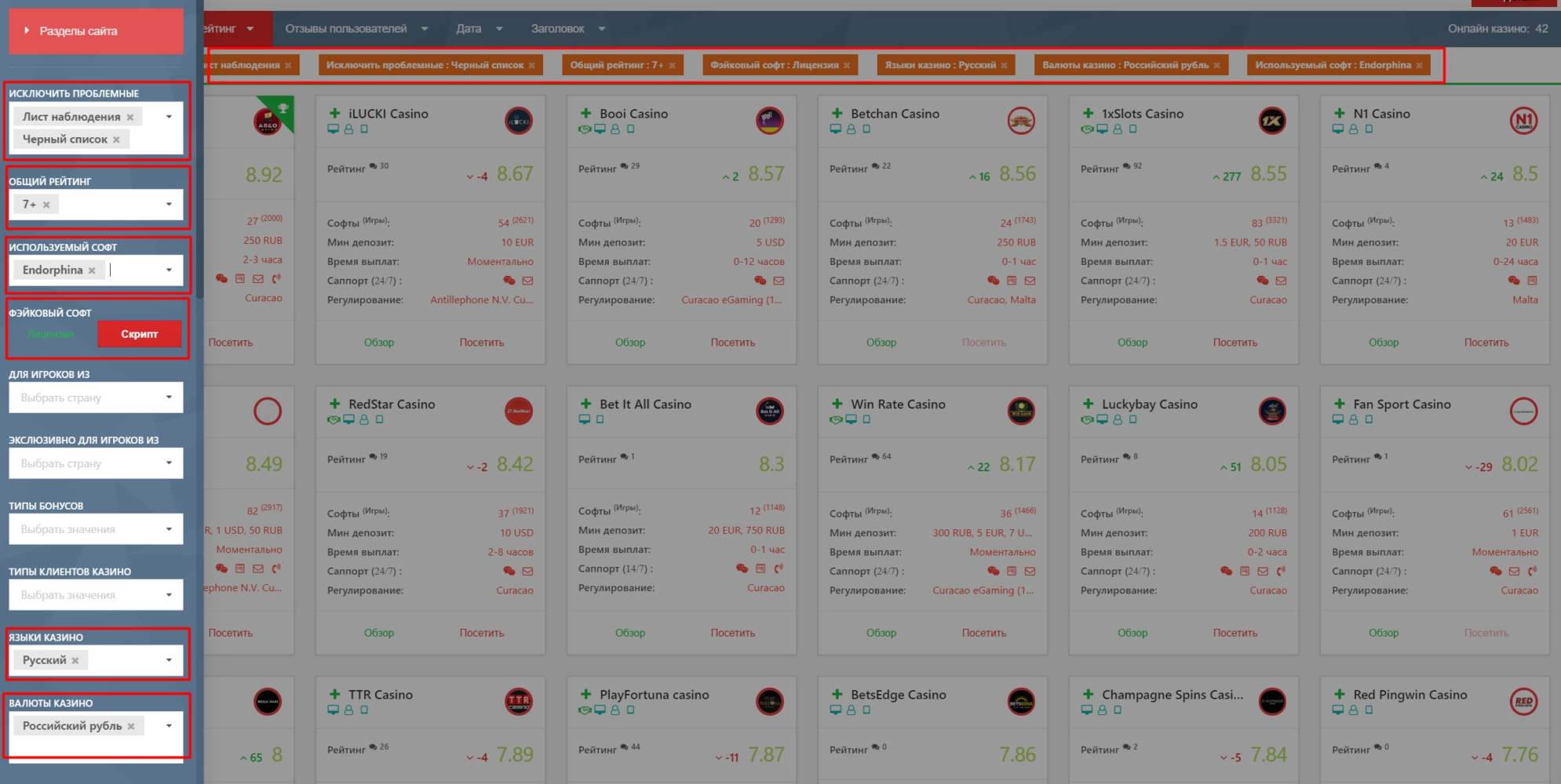Честное и безопасное заведение по выплатам и отзывам, которое не прячет от игроков отрицательные отзывы и всегда готово ответить за свои действия может быть найдено только в таких листингах, где рейтинг формируется путем подсчета параметров в автоматическом режиме без какой-либо субъективной оценки и вмешательства администрации ресурса на базе прямой работы алгоритма с реальными характеристиками и данными казино и фидбека игроков.