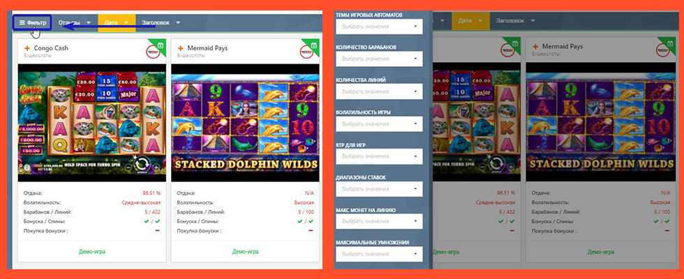 Но у фильтра, как вы поняли, гораздо больше возможностей для выбора. Заходите в раздел со всеми видеослотами, затем в подраздел с видом игр и выбираете те параметры, что вы хотите видеть в игровых автоматах.