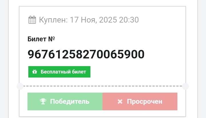 Приветствую, а можно получить выигрыш по просроченному билету, а то никаких уведомлений не поступало только сейчас узнал, впервые выиграл за год и такой облом 🙏