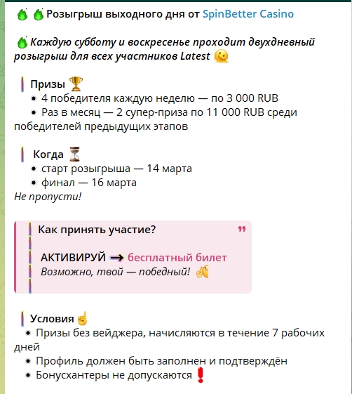 | #1061460 | 07_08-03-2026 SpinBetter Casino 70 000 RUB | 2026-03-07 10:00 UTC | 2026-03-09 09:00 UTC | Завершен |