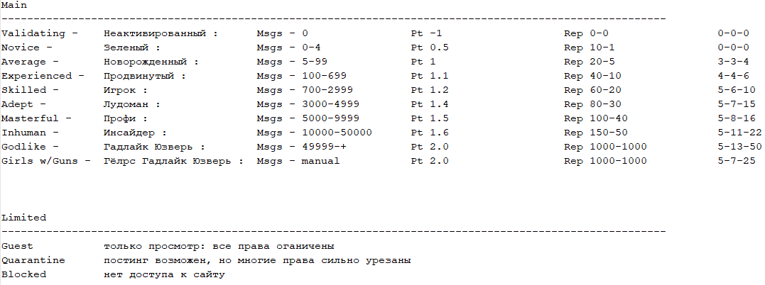 В базовом виде все пользователи разделены на группы с ограничениями и допущениями, исходя из которых происходят все автоматические начисления за ту или иную активность: п. 5 T&C поинт-системы