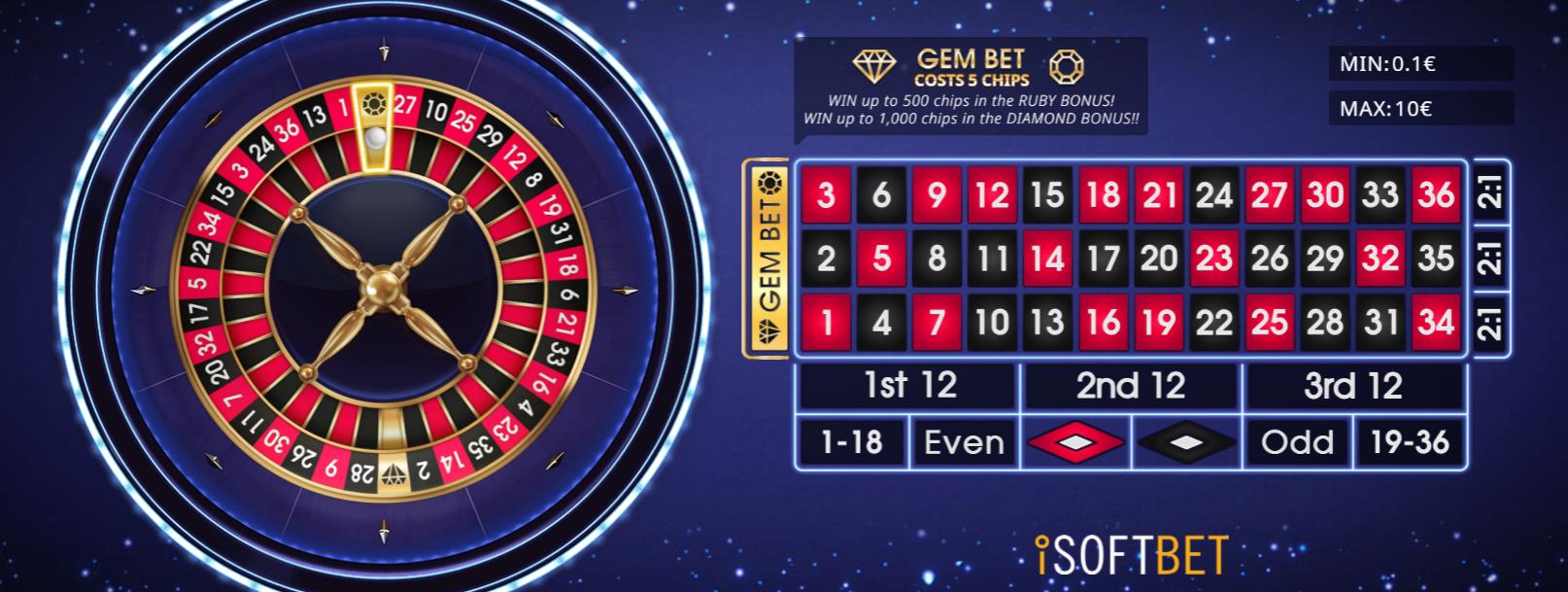 Представленный выше бесплатный игровой автомат с рулеткой содержит в функционале два бонусных колеса: рубиновый и бриллиантовый розыгрыш. Выигрыш в таком бонусном раунде способен составить 200 ставок.