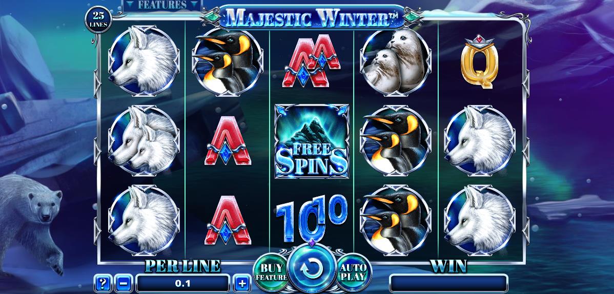Не менее интересное сочетание двойного символа с другими функциями представил провайдер Spinomenal, выпустив онлайн слот Majestic Winter. Можно сразу взглянуть на его демонстрационную версию, математика которой ничем не отличается от вариации для ставок реальными деньгами.