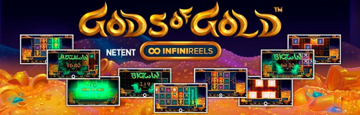 В мае 2020 года провайдер NetEnt сообщает о выходе нового игрового автомата с уникальной механикой Gods of Gold. Особенность механики слота заключалась в непрерывном добавлении новых катушек к прежнему рилсету при каждой последующей результативной комбинации.