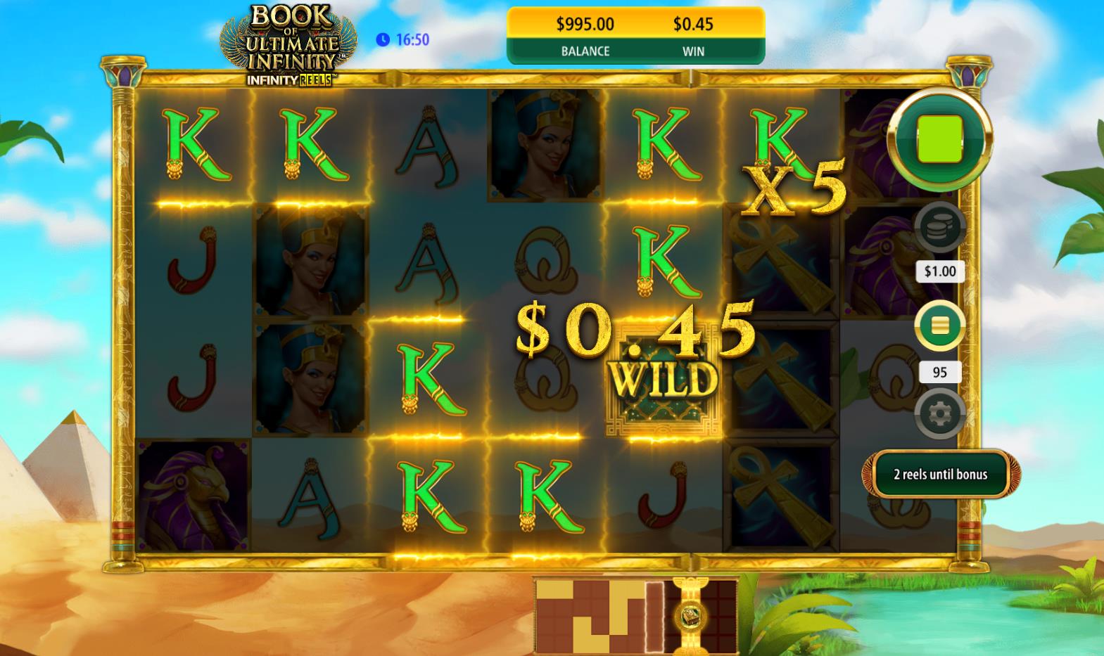 Карта рилсета игрового автомата Book of Ultimate Infinity подсказывает, насколько длинной должна быть череда выигрышных комбинаций, чтобы игрок мог добраться до бонусного символа и получил возможность снять большой куш в призовом раунде с бесплатными вращениями и активированным специальным символом. А в пути его ожидает увеличение основного выигрыша за счет прогрессивного множителя.