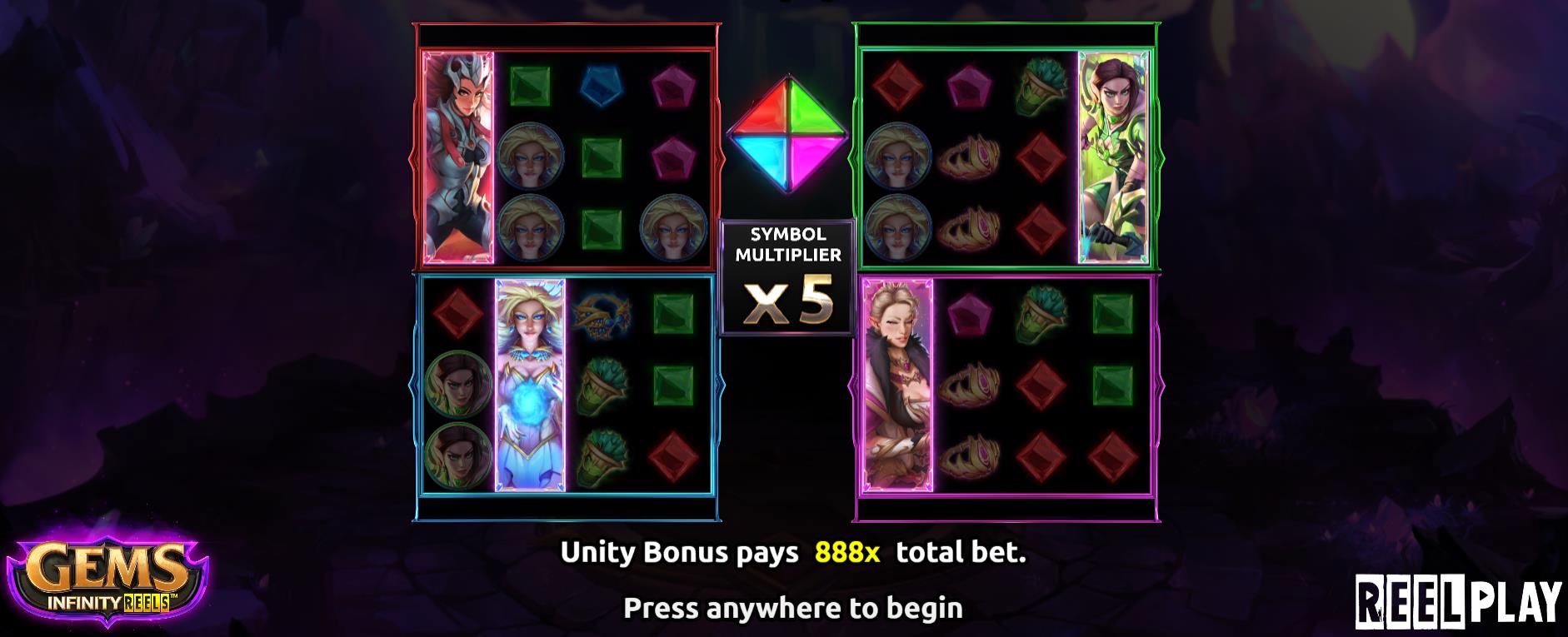 К тому же слот Gems Infinity Reels предоставляет дополнительный шанс на внушительный занос за счёт дополнительного игорного пространства: изначально это два рилсета, а в бонусном раунде появляется возможность разблокировать 3-й и 4-й . Для этого необходимо коллекционировать скаттер-символы и при открытии нового игорного пространства игроку предоставляется еще 5 бесплатных спинов.