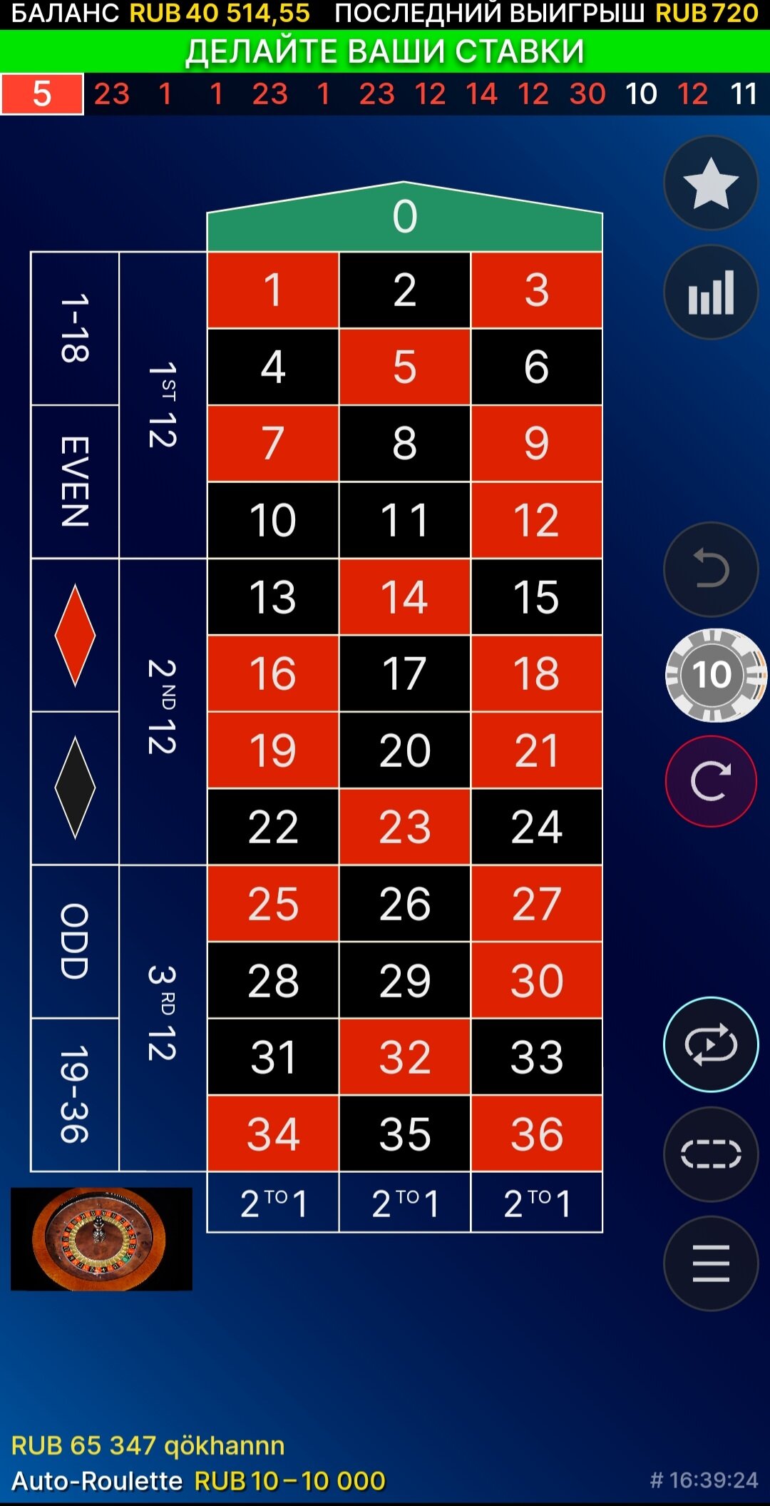 PS. Если «крутишь руль» и видишь шо одно число начинает повторятся через не большое количество спинов то по неволе «грузишь» его и соседей по колесу. Да и о соседях по столу забывать не стоит, с дилером такое частенько «выстреливает»)