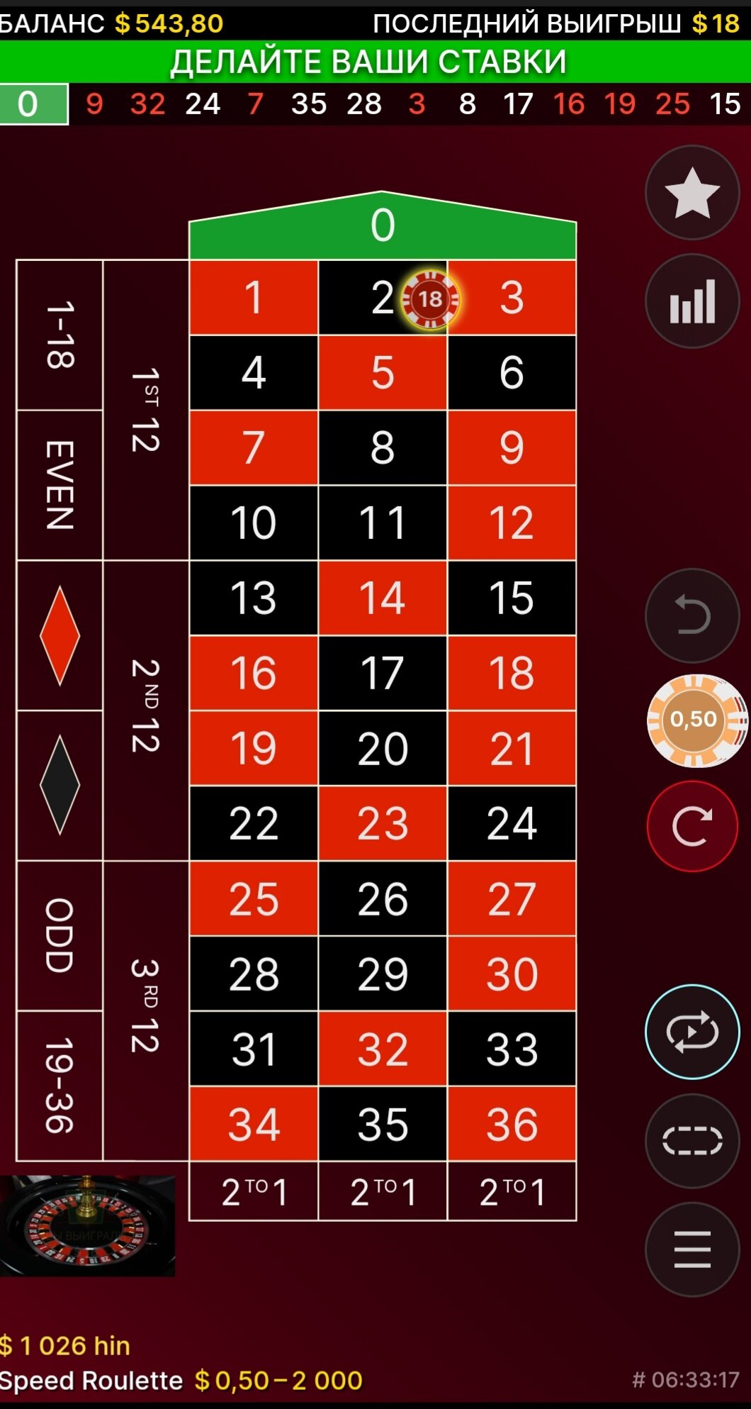Буквально тока шо окончился турнир по рулетке в ВV, выбрал по чуйке четыре номера со страховкой. Первые два спина в молоко…