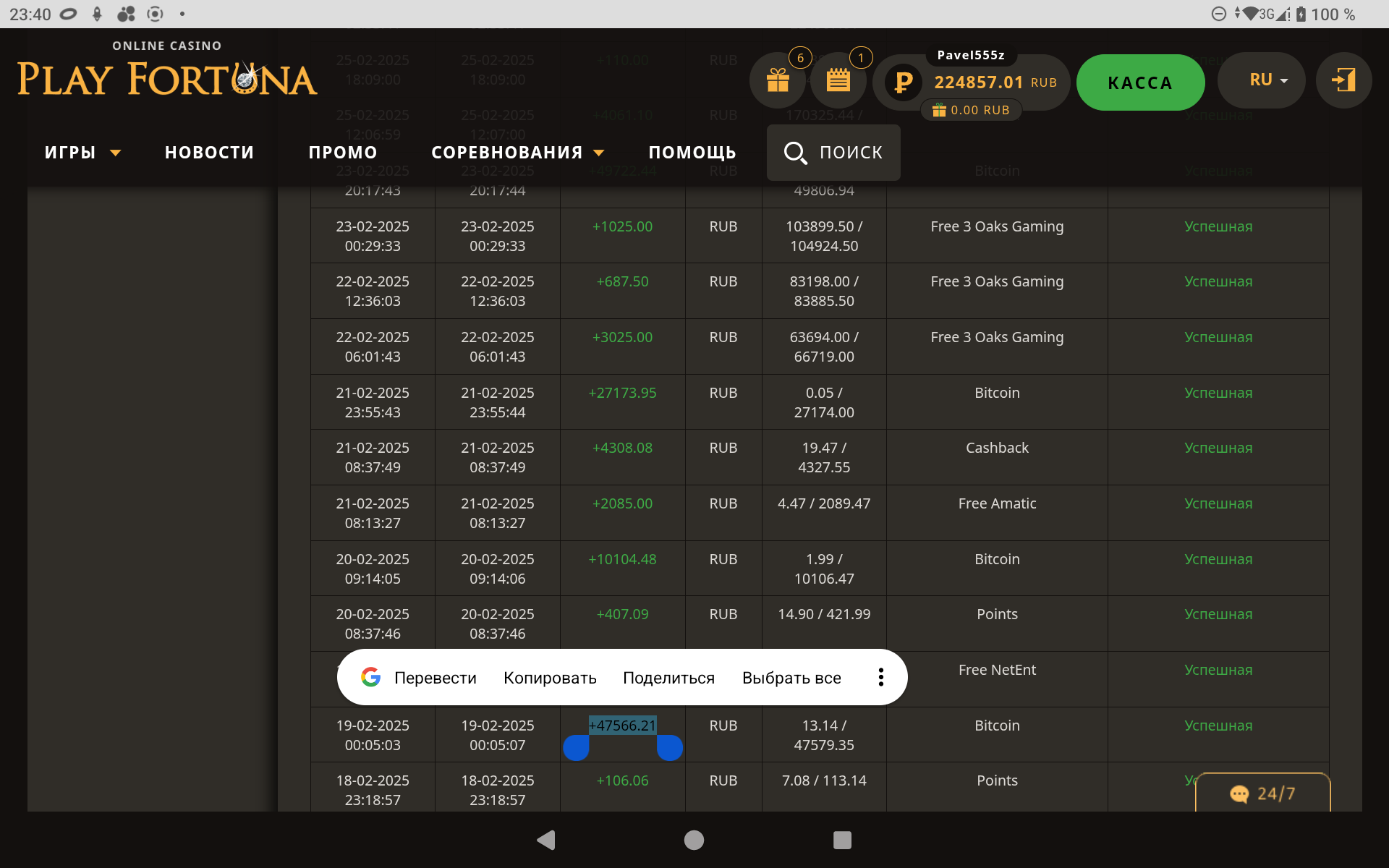 Как видите 21 ог февраля получил очередной кэшбэк 4308.08 рэээ после Вашего предложения депнуть и поиграть в новые провайдеры и слоты,это как раз примерно с 4,5% с залитого с 100.000 к по Вашему драгоценнейшему совету!!!