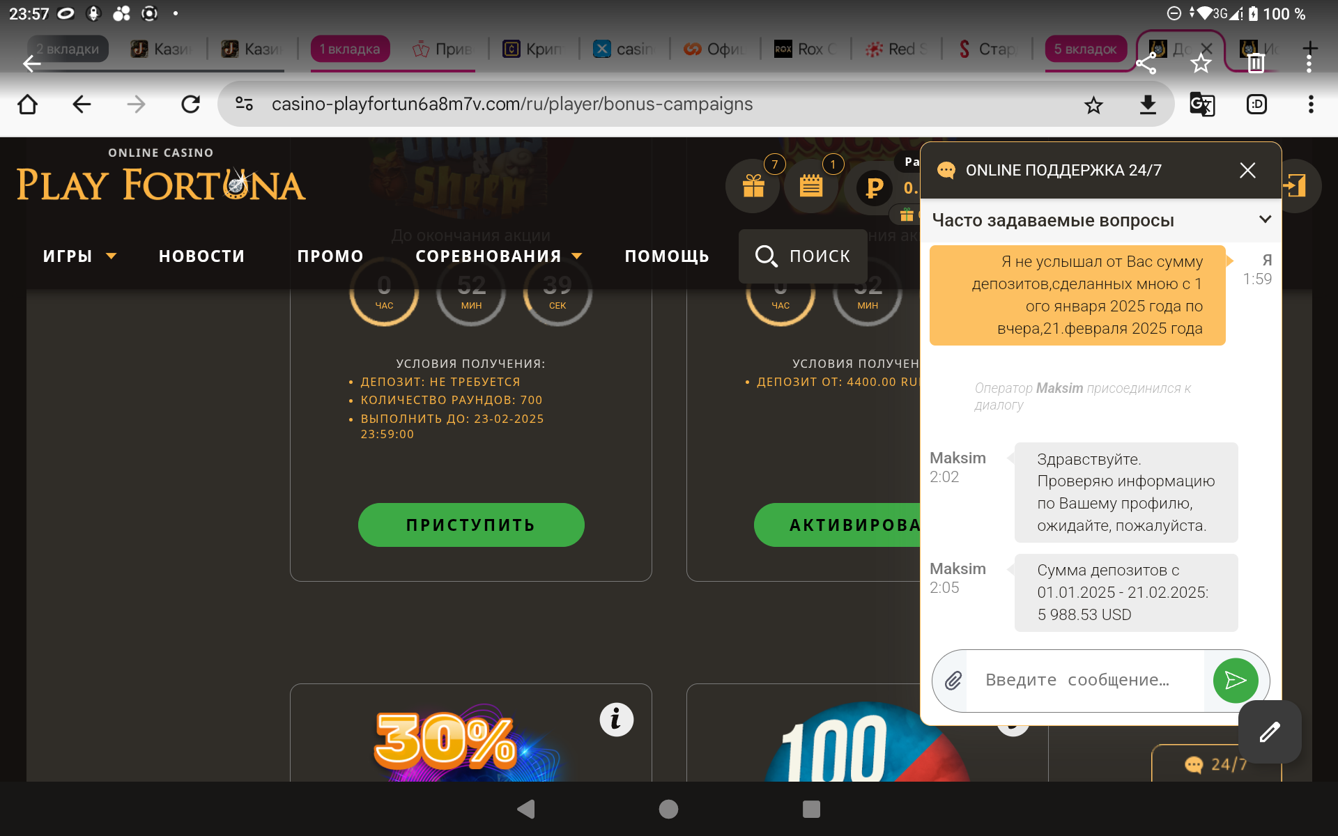Но проведя детальную и исчерпывающую проверку и сопоставив все факторы От и До, мы на все 💯 % соглашаемся с доводами представителя игрового проекта Плейфортуна и признаем тот факт, что Администрация казино Плейфортуна четко действовала в соответствии с регламентом работы их казино и с правилами проекта и игрок действительно грубо нарушил все основные правила данного он лайн казино!!!