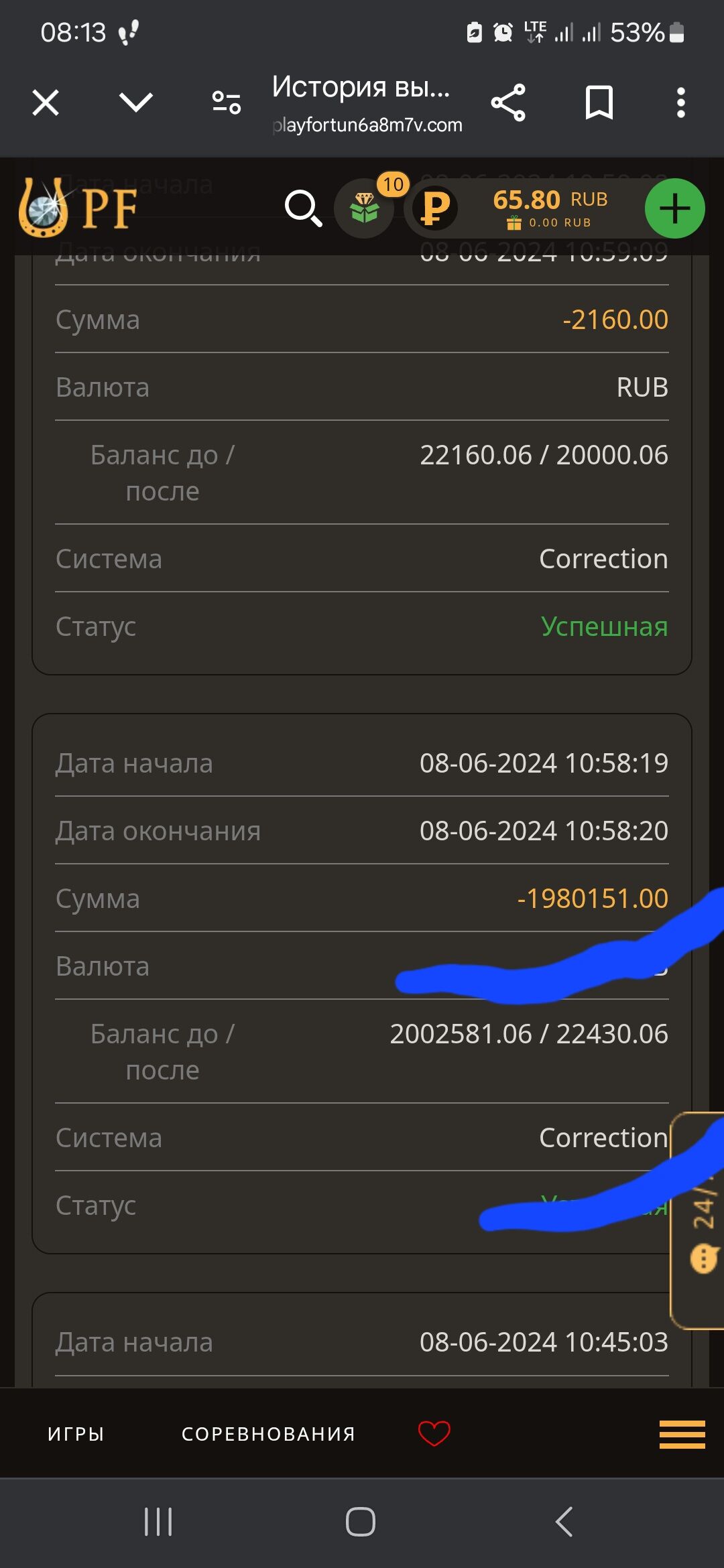 Вот сейчас напишу всю историю пополнении и вывода. До заноса естественно. 7 июня пополнил на 19000. Выиграл 90000. Поставил на вывод 80000. Пришло двумя платежами 74000 и 6000 соответственно. Потом несколько пополнении с этой же карты. От 5000 до 25000. И вот 8 июня 2024 на пополнение 25000 случается занос на сумму 1980151 руб. Ставлю на вывод и что ? Все верно. Отмена. Пишу в поддержку. Объясняю все специалисту и мне говорят. Дмитрий на карты третьих лиц запрещено выводить. Прошу чтоб мне все объяснили, так как вывод на карту эту уже производился. Мне говорят, что нужно выводить на свои реквизиты, и сказали сделать следующее. Вам нужно пополнить счёт со своей карты. Потом написать в чат чтоб карту верифицировали и можете оформлять вывод. Делаю как сказали в поддержке, но карту не верифицируют. Просят чек последнего пополнения. Я скидываю его, так я последний деп сделал со своей карты. Мне говорят ни этот чек, а тот с которого депозит был сделан ранее. Я скидываю чек естественно с карты мамы. Все честно. Ничего не скрываю. Проходит несколько минут и у меня списывают деньги со счета. Объяснив это нарушением