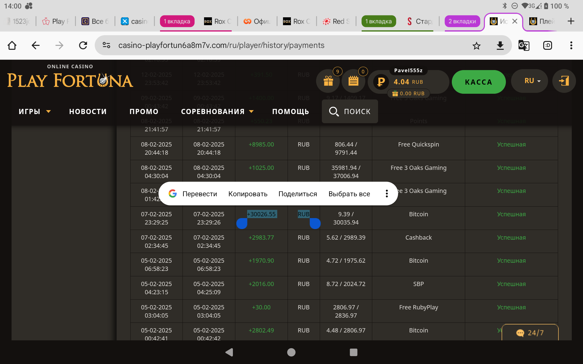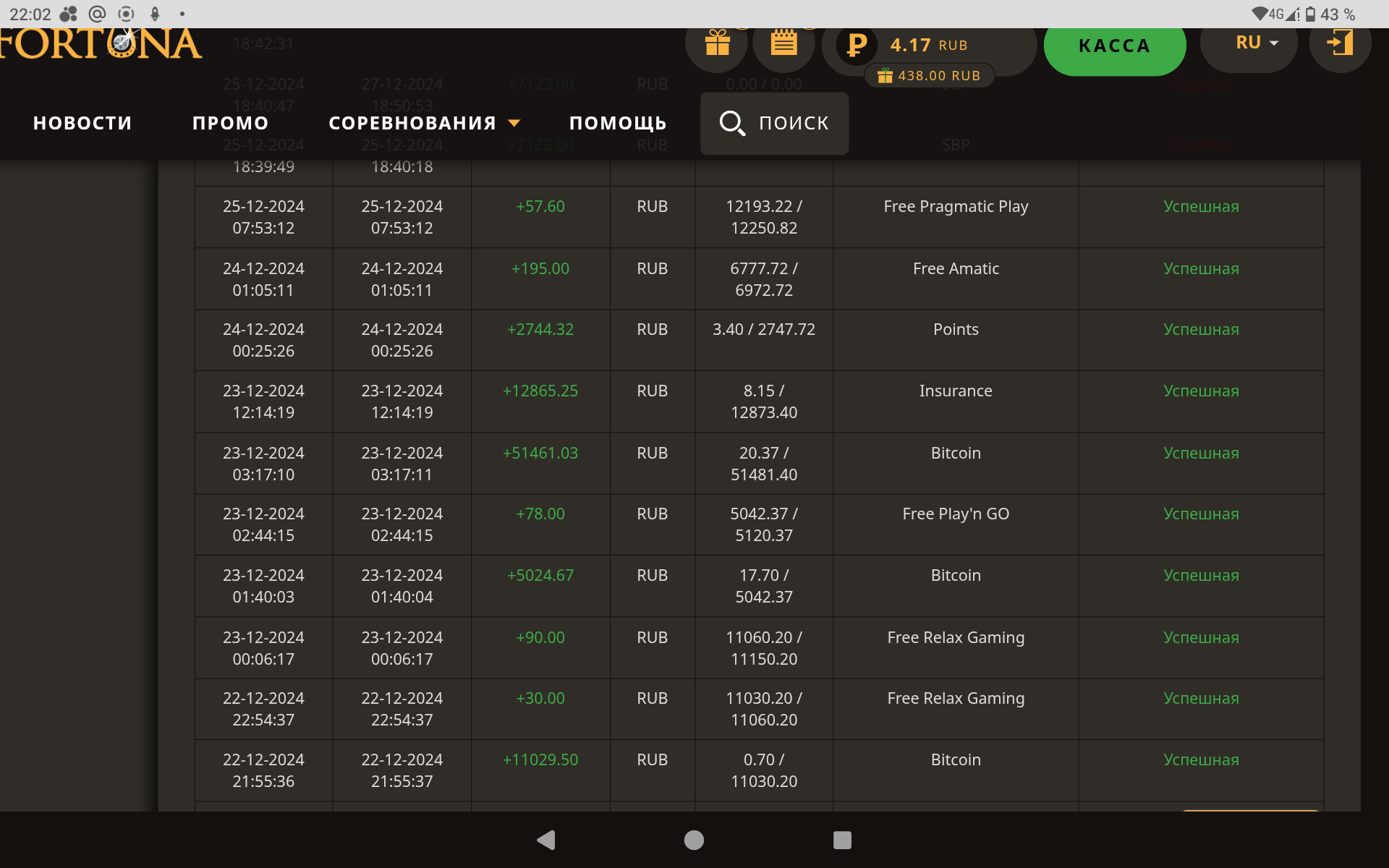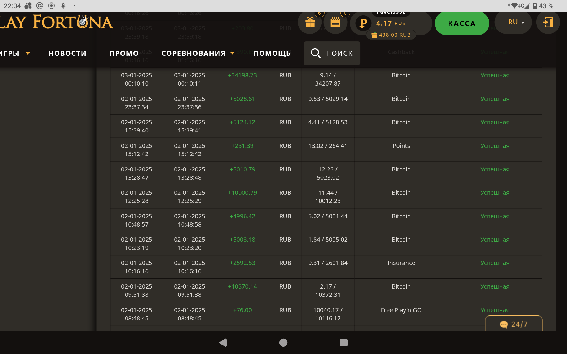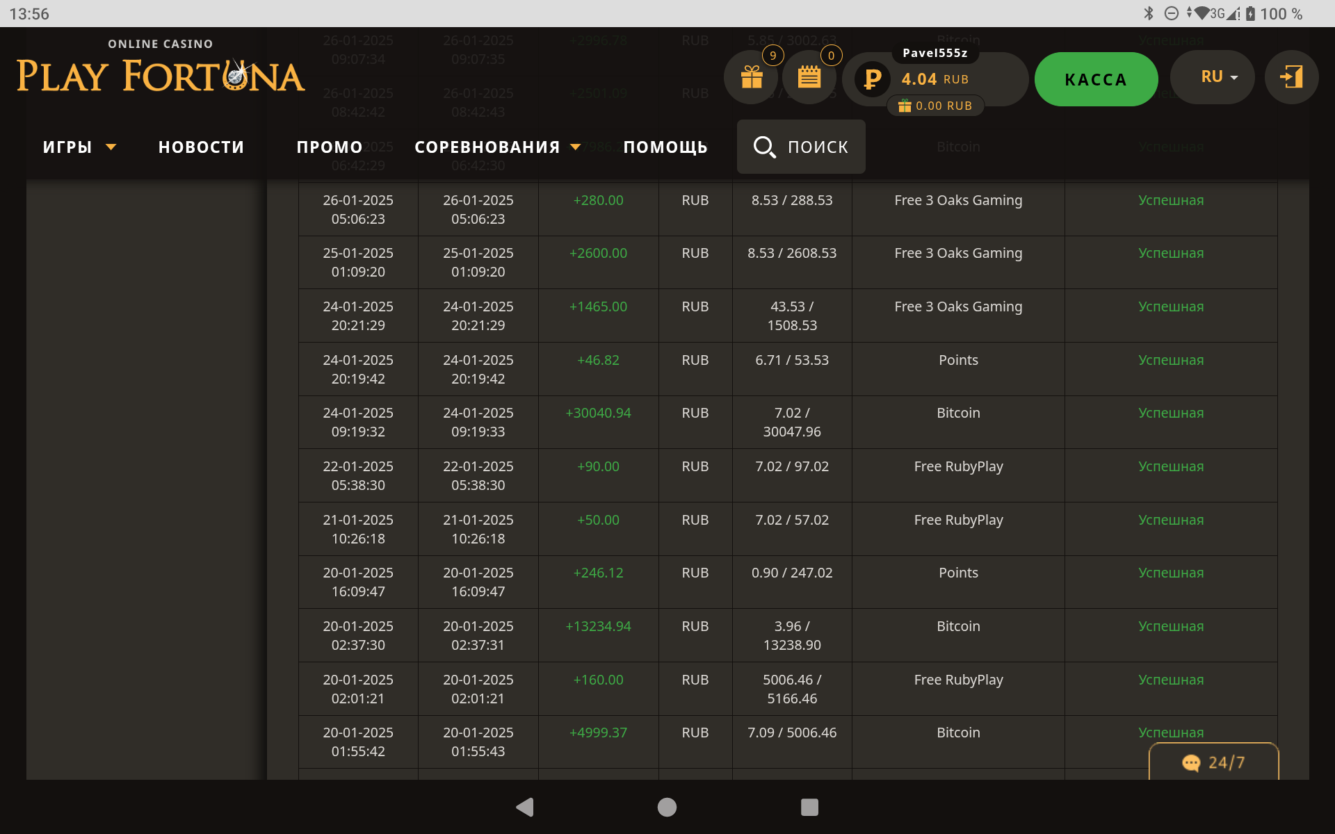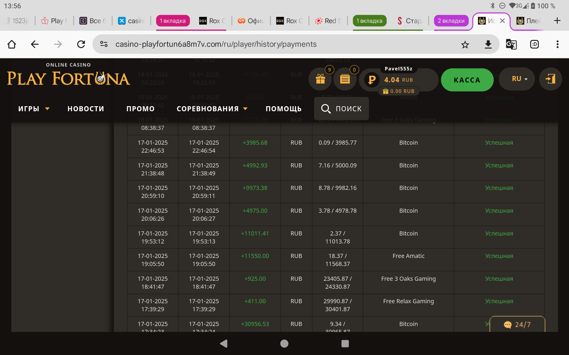 Депозит сделан 1января и тогда же он поступил на кошелек плей фортуны(в бы все видноя сумма есть на кошельке и поступила она минут за пять туда) однако сумму не закинули на баланс самого казино. В ТП взяли хэш и отправили на проверку в фин отдел, которая до сих пор идёт.
