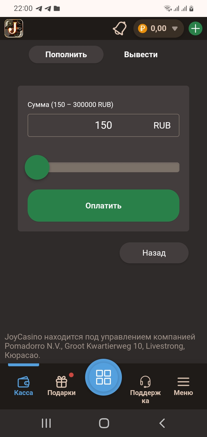 К Джою вопросов нет! Выиграешь — казино всегда выведет выигрыш. Игра в слоты, конечно там никакая! Но.., надо отдать должное, они честные с игроками — выкрутили ртп во многих провайдерах такие как хаксов…, да даже в прагматике! Но, честно опубликовали и открыто говорят — не выгодно ртп 96 и выше. Претензий нет! Выводы редкие — раз в 4-6 месяцев…, но хоть честно поступают. Водочка, Вавадка — публикуют 96+, а с фактом не вяжется!!!